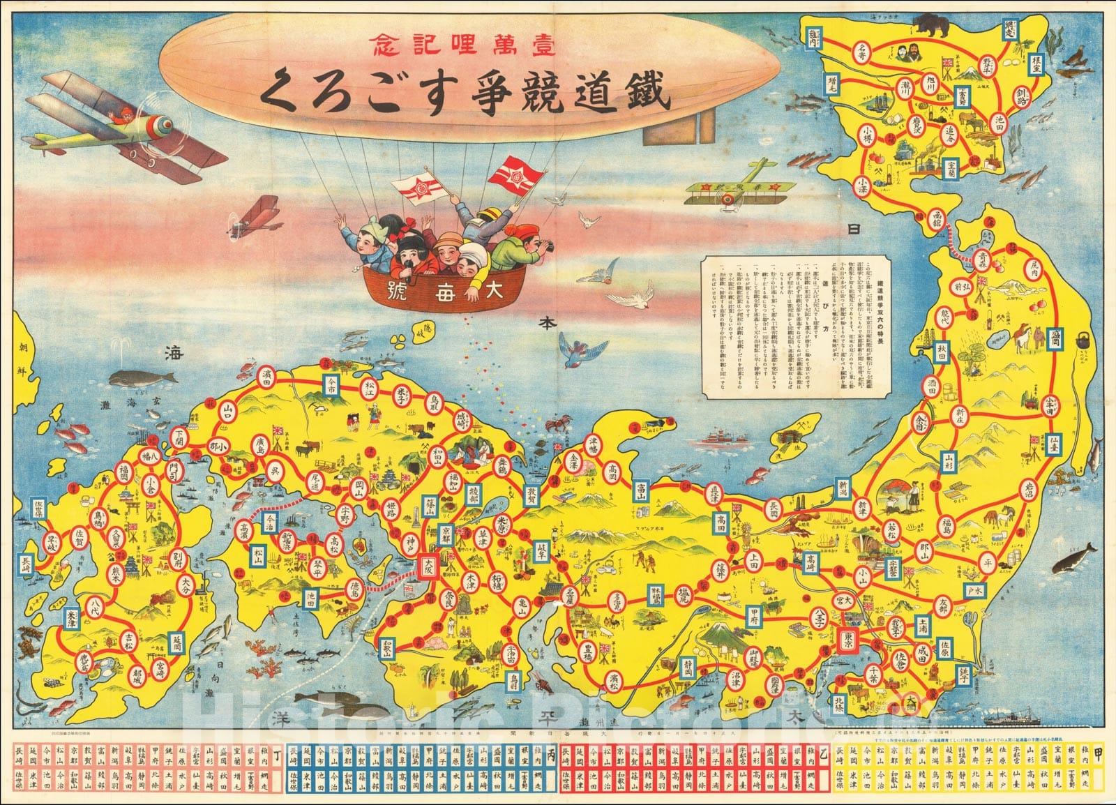 Historic Map : (Pictorial Gameboard Map of Japan) Tetsud? ky?s? Sugoroku, 1925, Anonymous, Vintage Wall Art