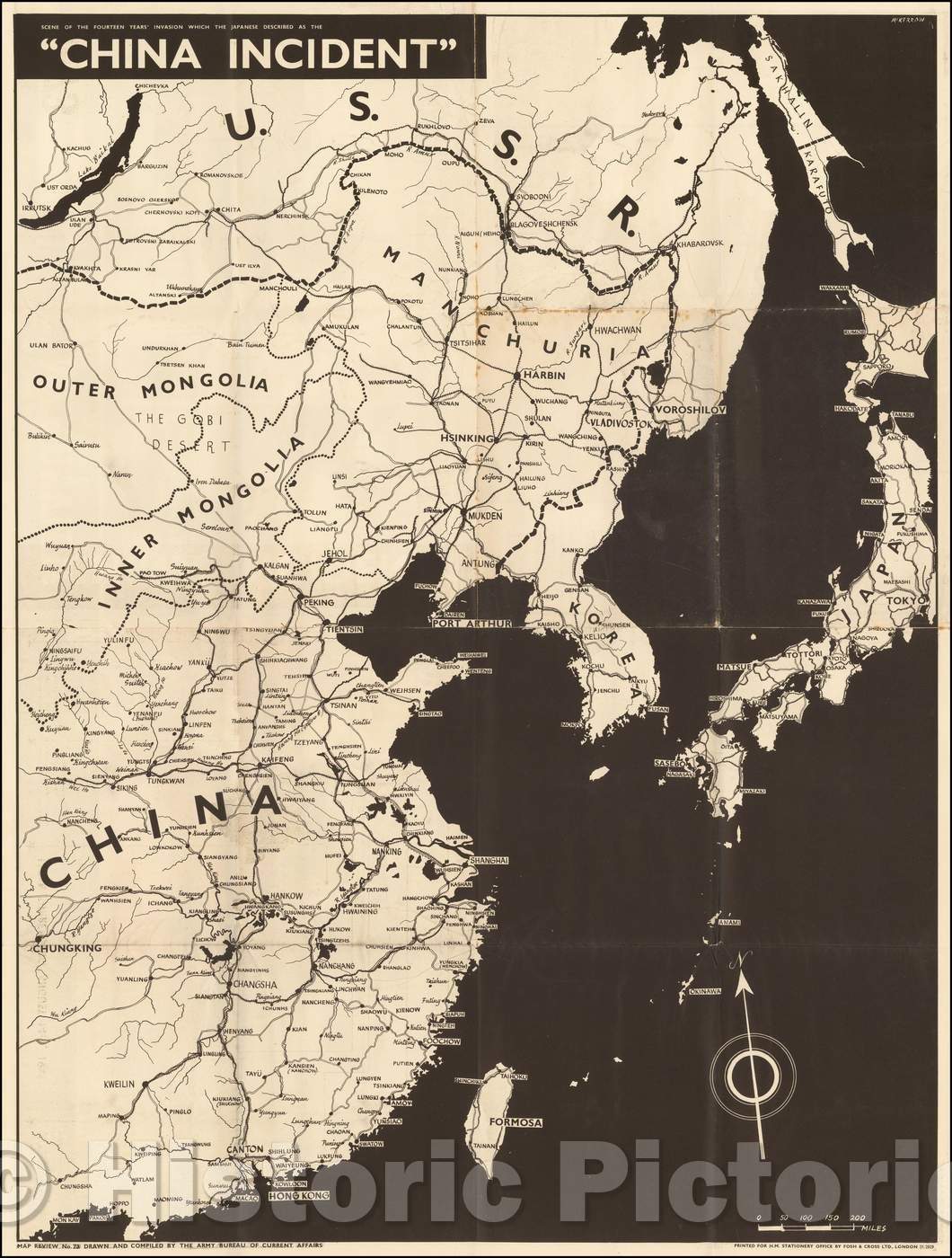 Historic Map - Scene of the Fourteen Years' Invasion Which The Japanese Described As The, 1945, Army Bureau of Current Affairs - Vintage Wall Art