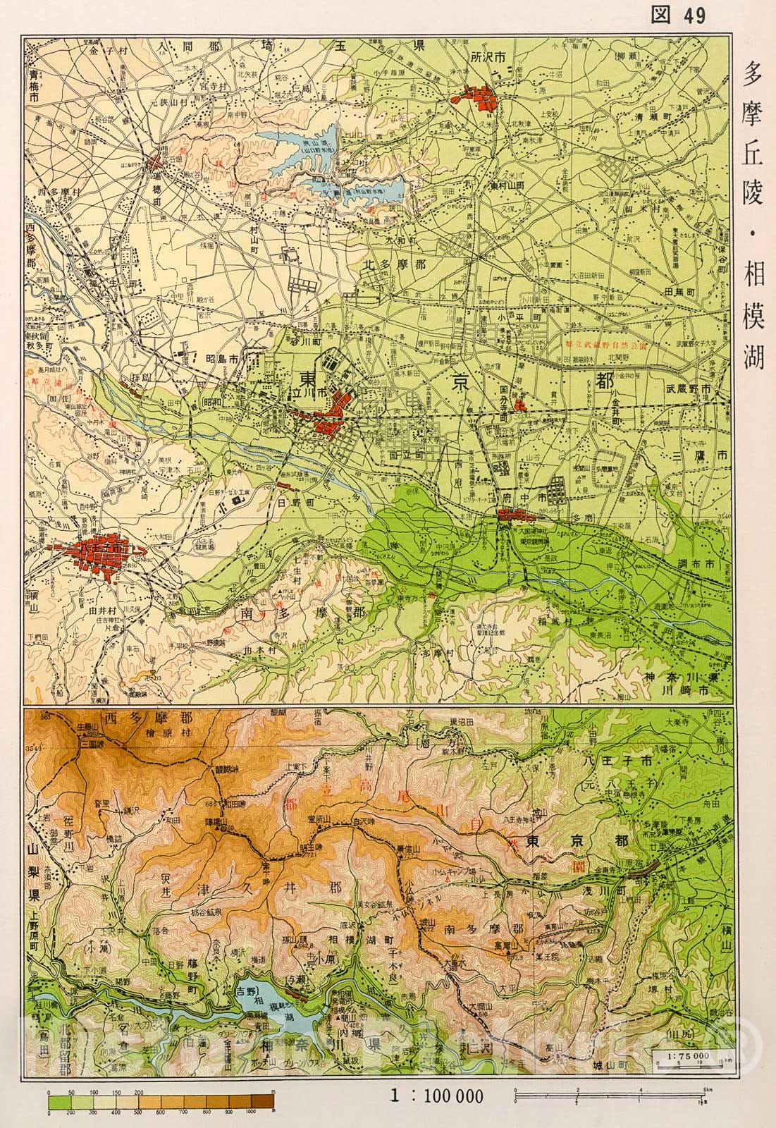 • .Historic Map : Tama Hills. Sagami Lake, Scale 1:75,000, Japan, 1956, Vintage Wall Decor