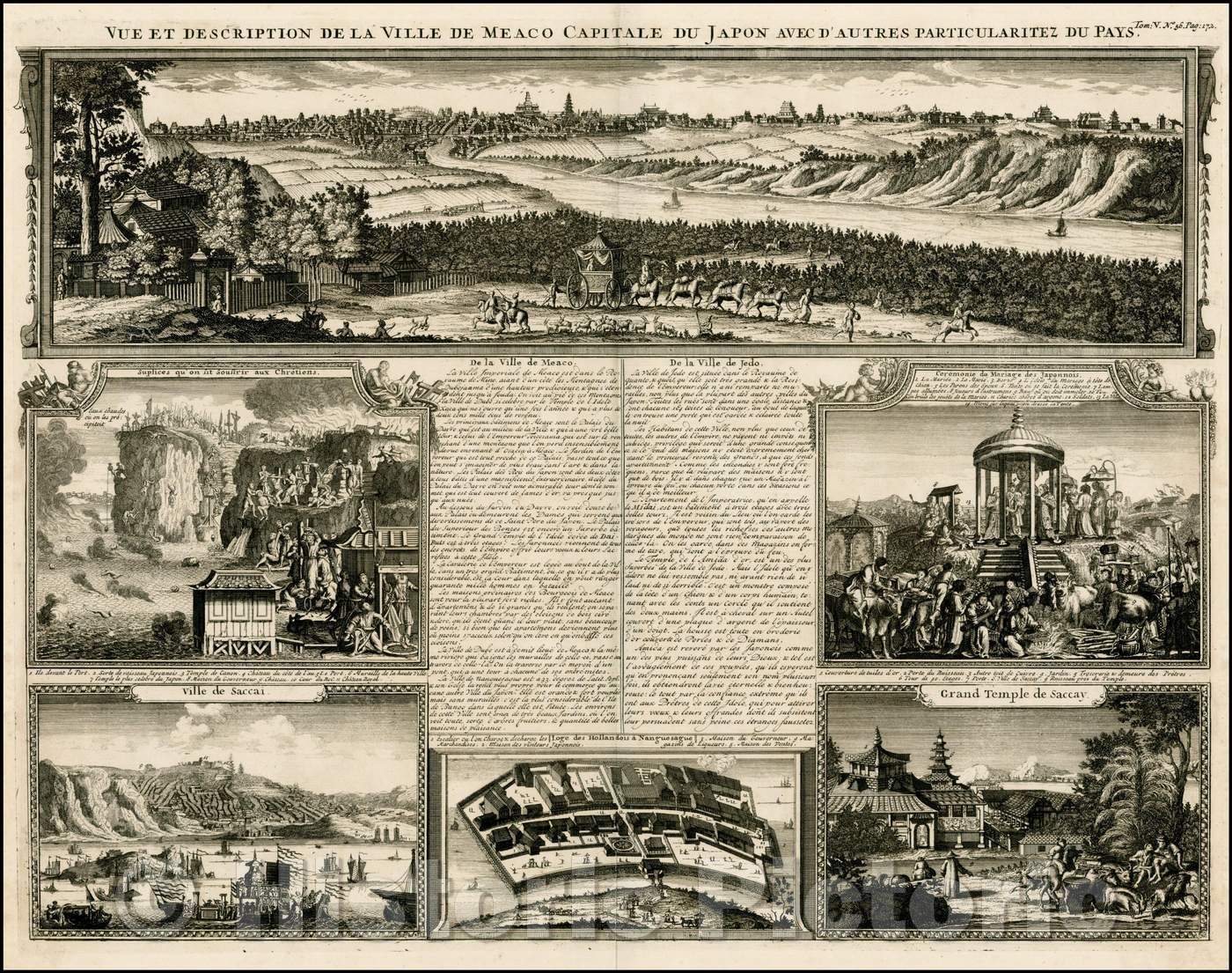 • .Historic Map - Vue et Description De La Ville De Meaco Capitale Du Japon/Views of Japan, from Chatelain's Atlas Historique, 1720, Henri Chatelain - Vintage Wall Art