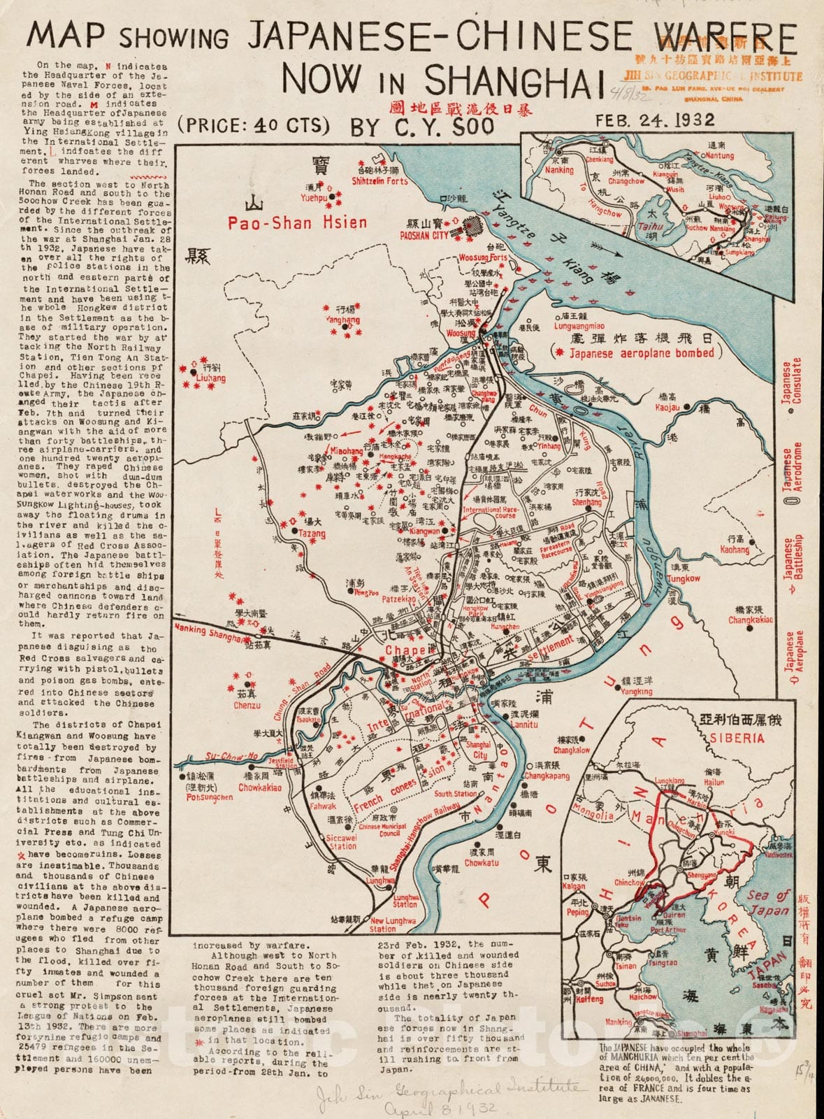 • Historical Map, 1932 Map Showing Japanese-Chinese warfre [sic] Now in Shanghai, Vintage Wall Art