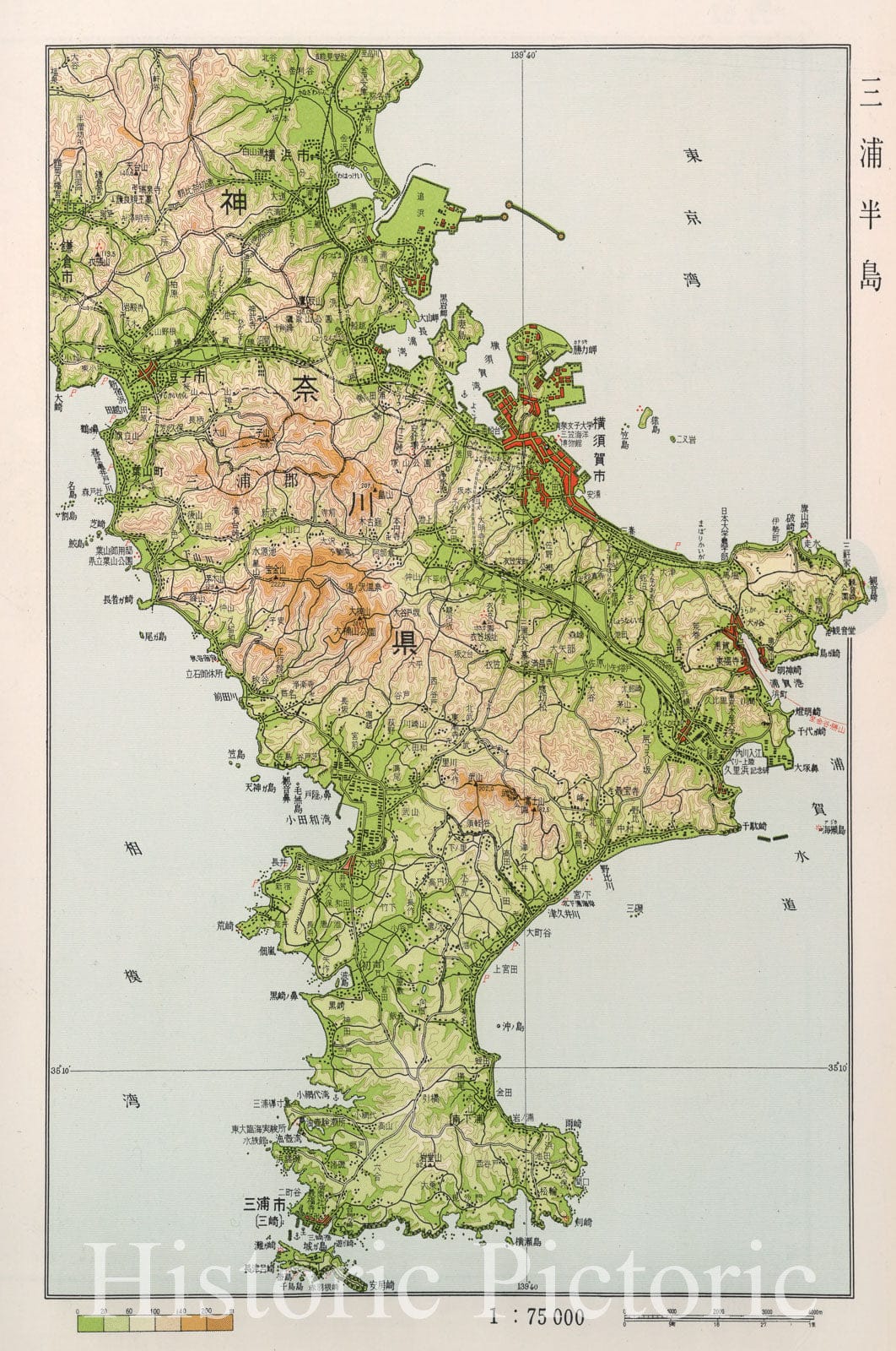 Historic Map : Miura Peninsula, Japan, 1956, Vintage Wall Decor