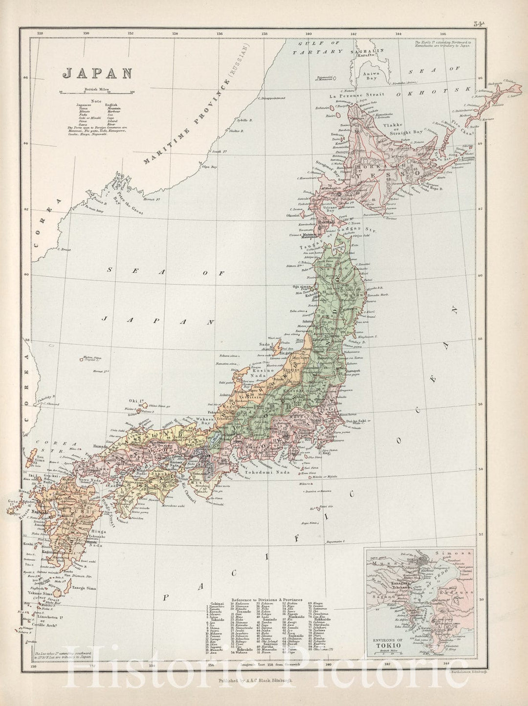 Historic Map : Japan, 1884, Vintage Wall Decor