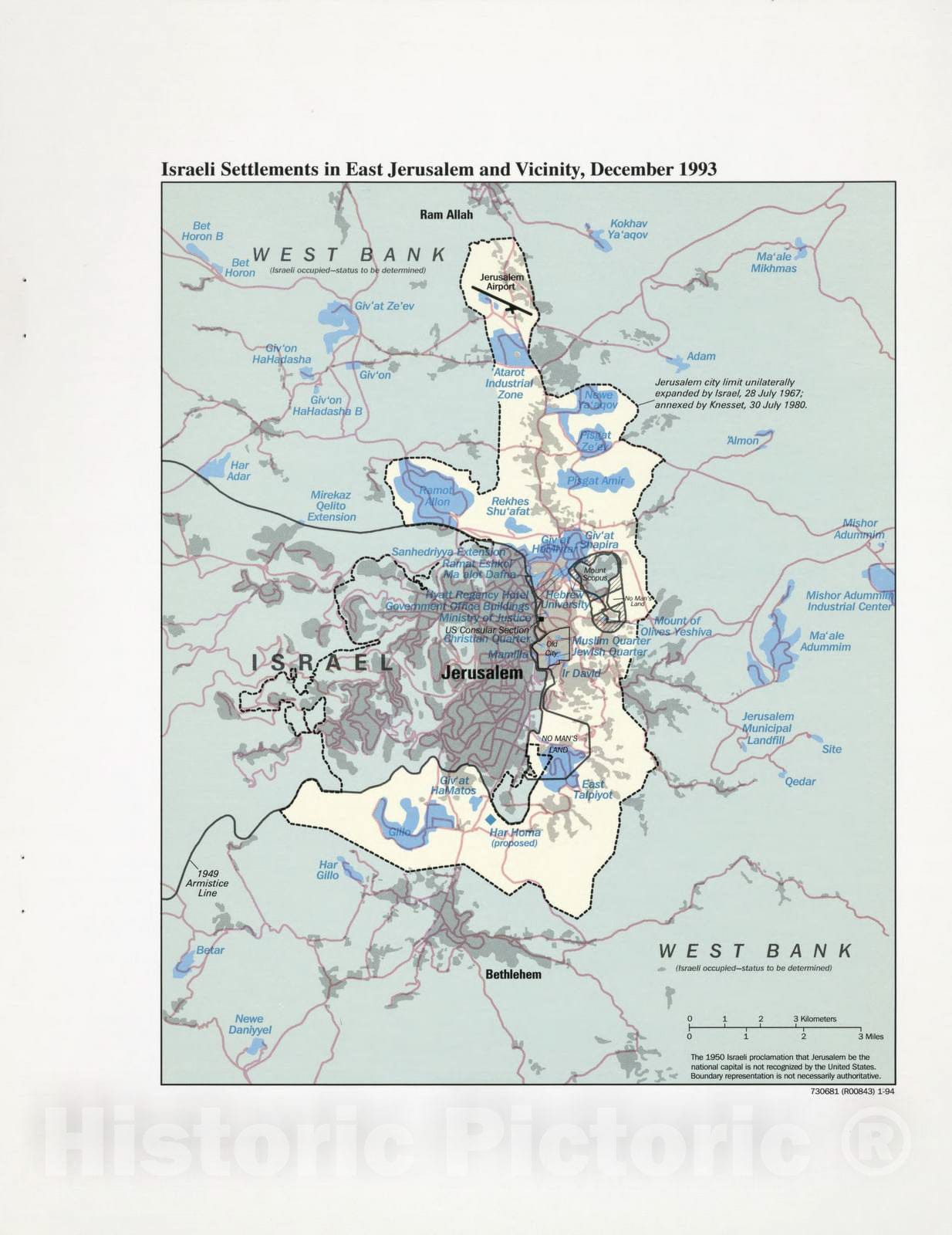 • .Historic 1994 Map - The Gaza Strip & West Bank : a map Folio - Israeli Settlements in East Jerusalem, December 1993 - Gaza Strip and West Bank