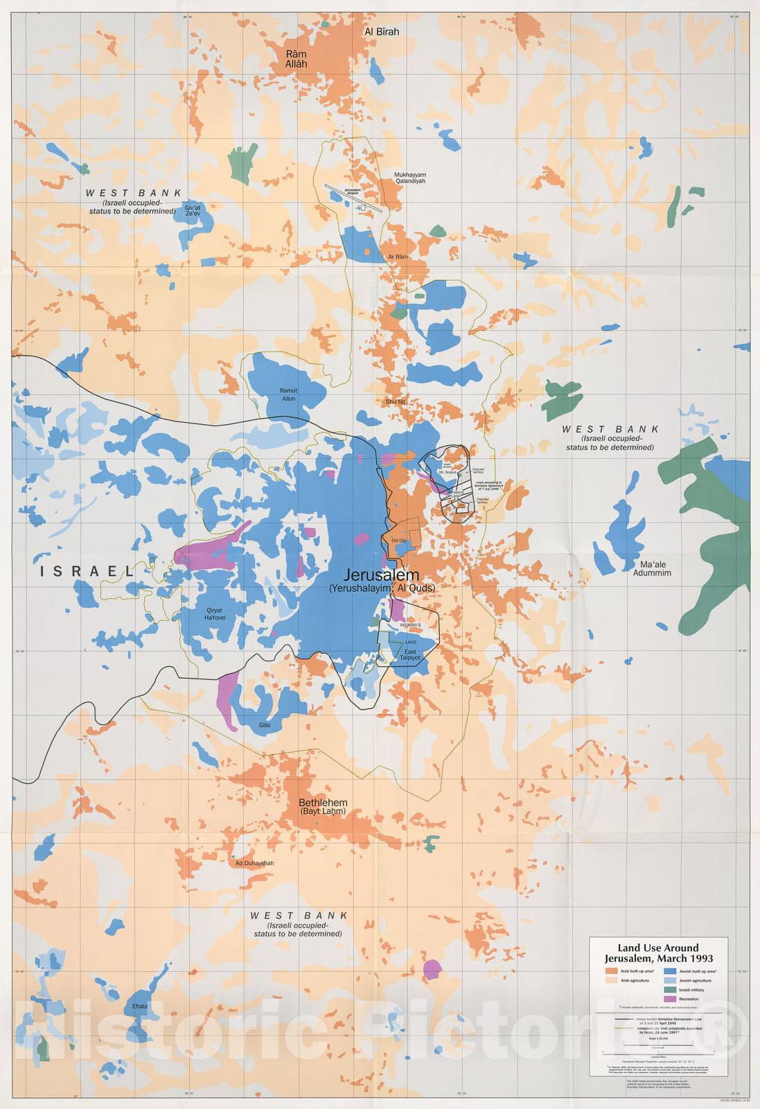 Historic 1994 Map - The Gaza Strip & West Bank : a map Folio - Land Use Around Jerusalem, March 1993 (Title Differs from Table of Contents) - Gaza Strip and West Bank
