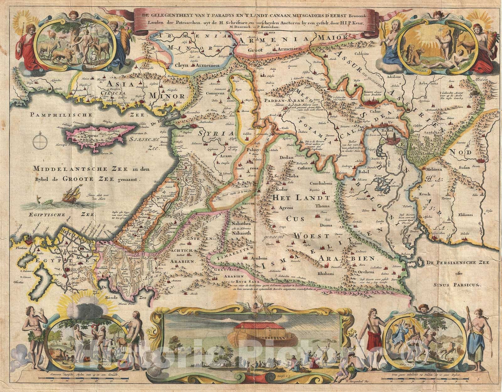 • .Historic Map : The Holy Land, w/ Eden, Babylon, Jerusalem, and Nod, Stoopendaal, 1702, Vintage Wall Art