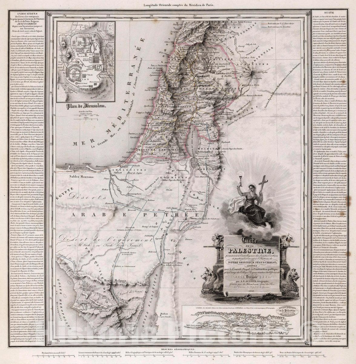 Historic Map : Palestine , Jerusalem, Carte de la Palestine, a l'histoire de Notre Seigneur Jesus Christ, 1830 Atlas , Vintage Wall Art