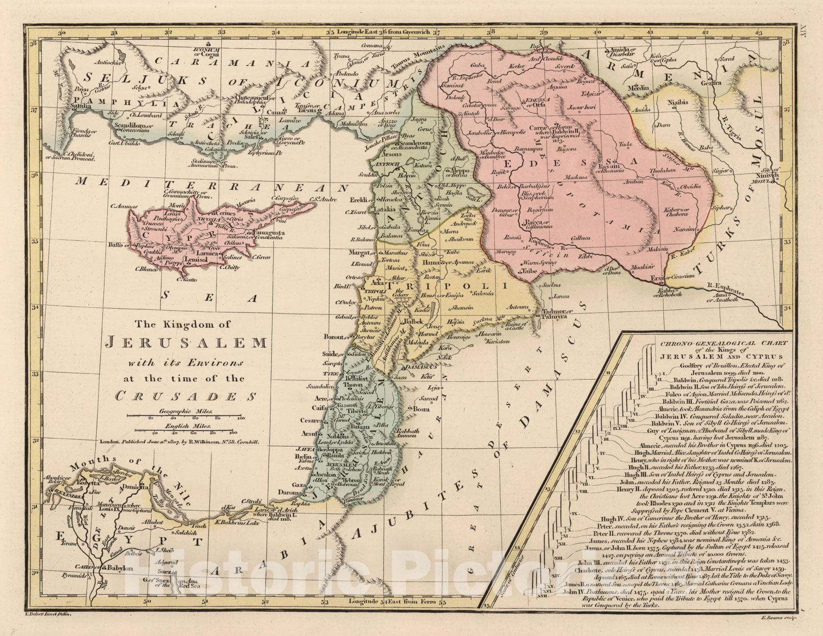 Historic Map - World Atlas - 1807 The Kingdom of Jerusalem with Its Environs at the Time of the Crusades.