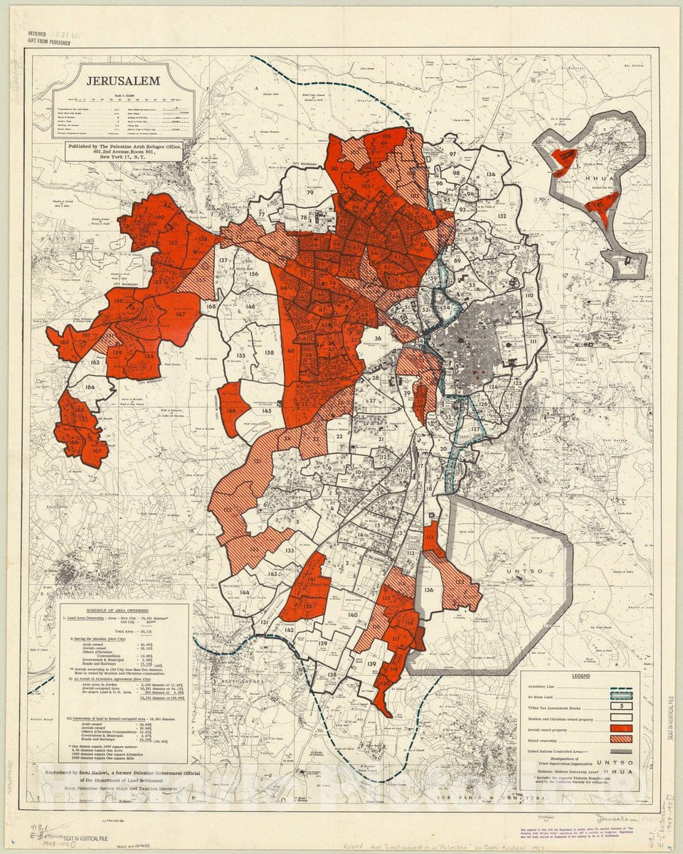 • .Map : Jerusalem 1948, Jerusalem : schedule of area ownership , Antique Vintage Reproduction