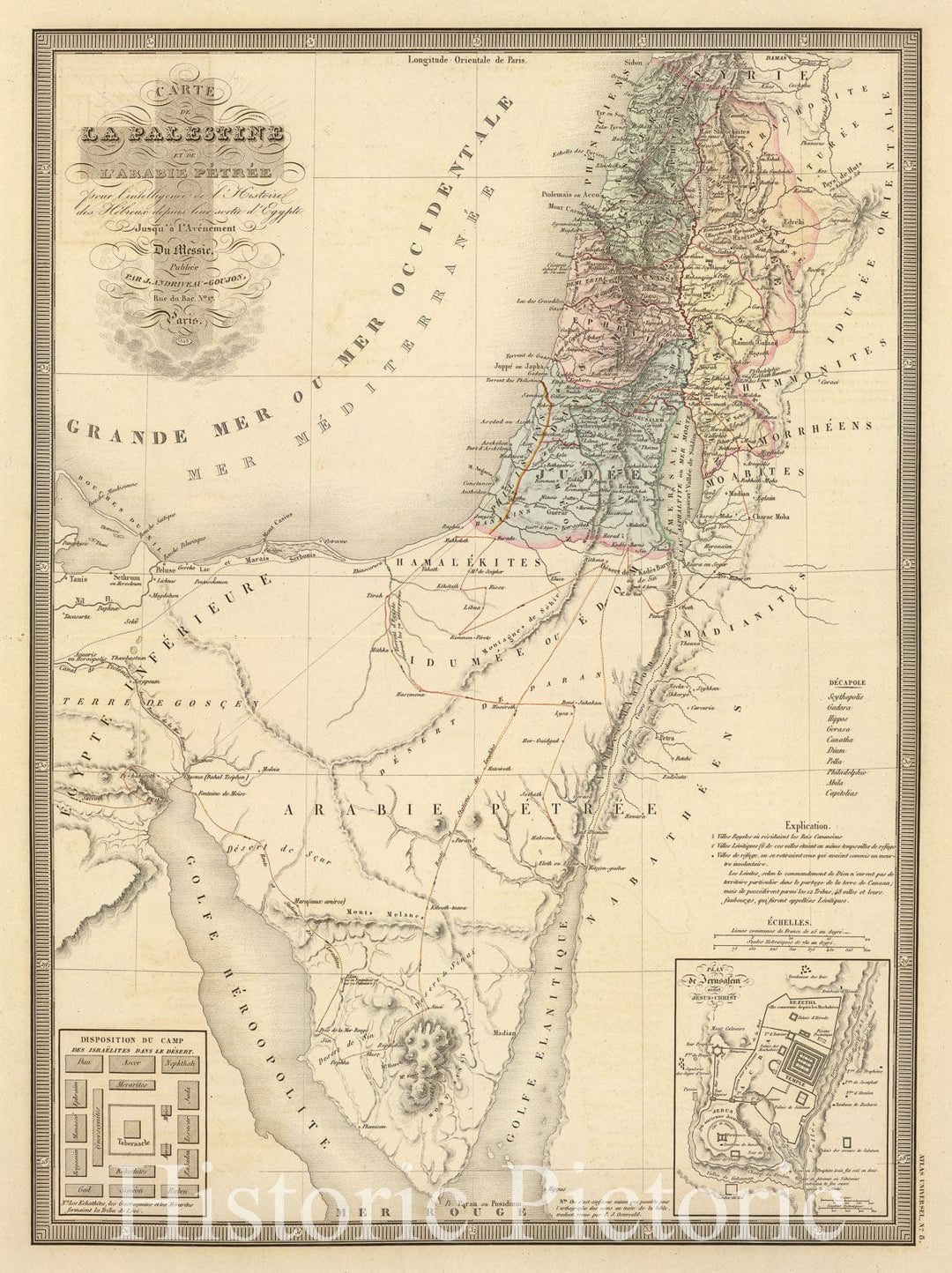 Historic Map : Israel; Palestine , Jerusalem, 1845 Palestine, l'Arabie Petree. , Vintage Wall Art