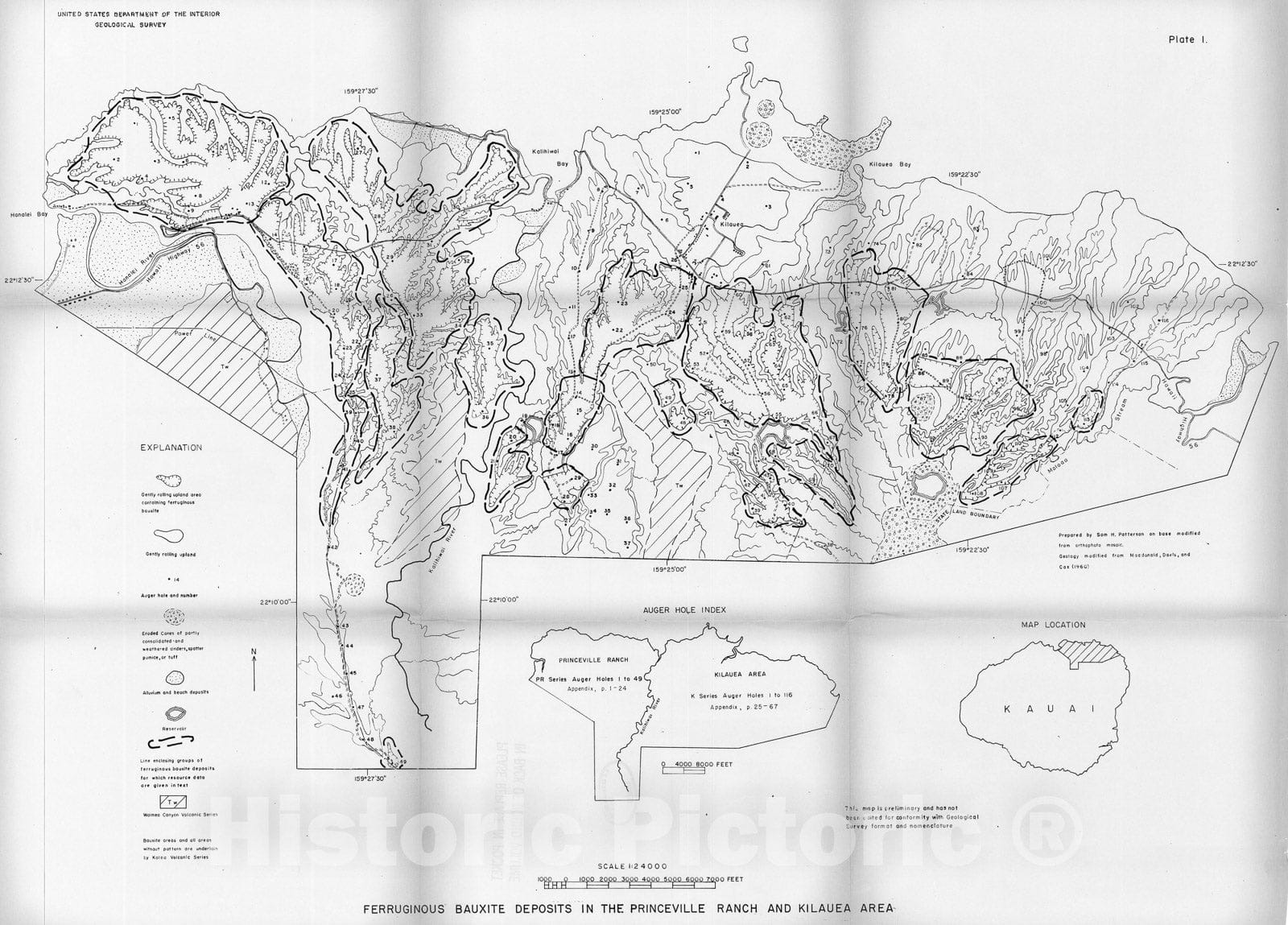 Map : Investigations of ferruginous bauxite and other mineral resources on Kauai and a reconnaissance of ferruginous bauxite deposits on Maui, Hawaii, 1971 Cartography Wall Art :
