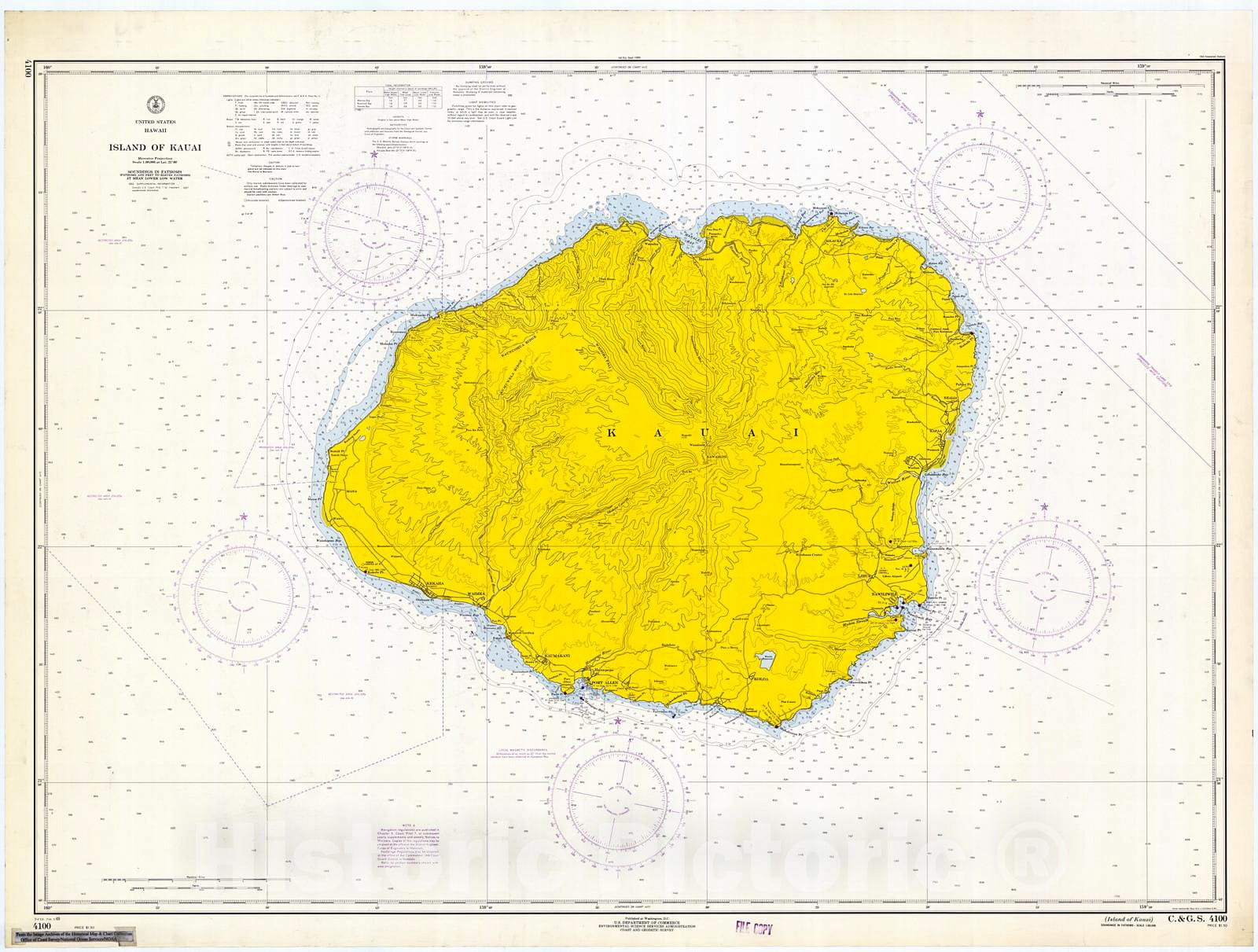 Historic Nautical Map - Island Of Kauai, 1969 NOAA Chart - Hawaii (HI) - Vintage Wall Art