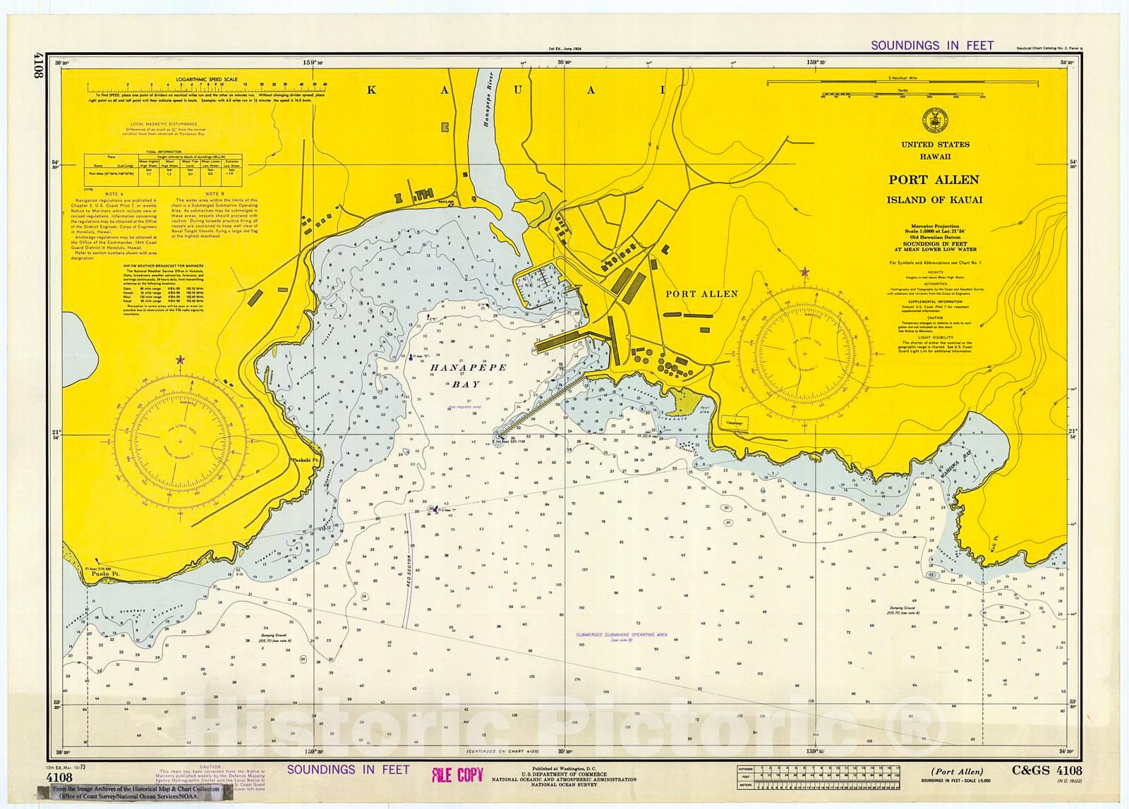 Historic Nautical Map - Port Allen : Island Of Kauai, 1973 NOAA Chart - Hawaii (HI) - Vintage Wall Art