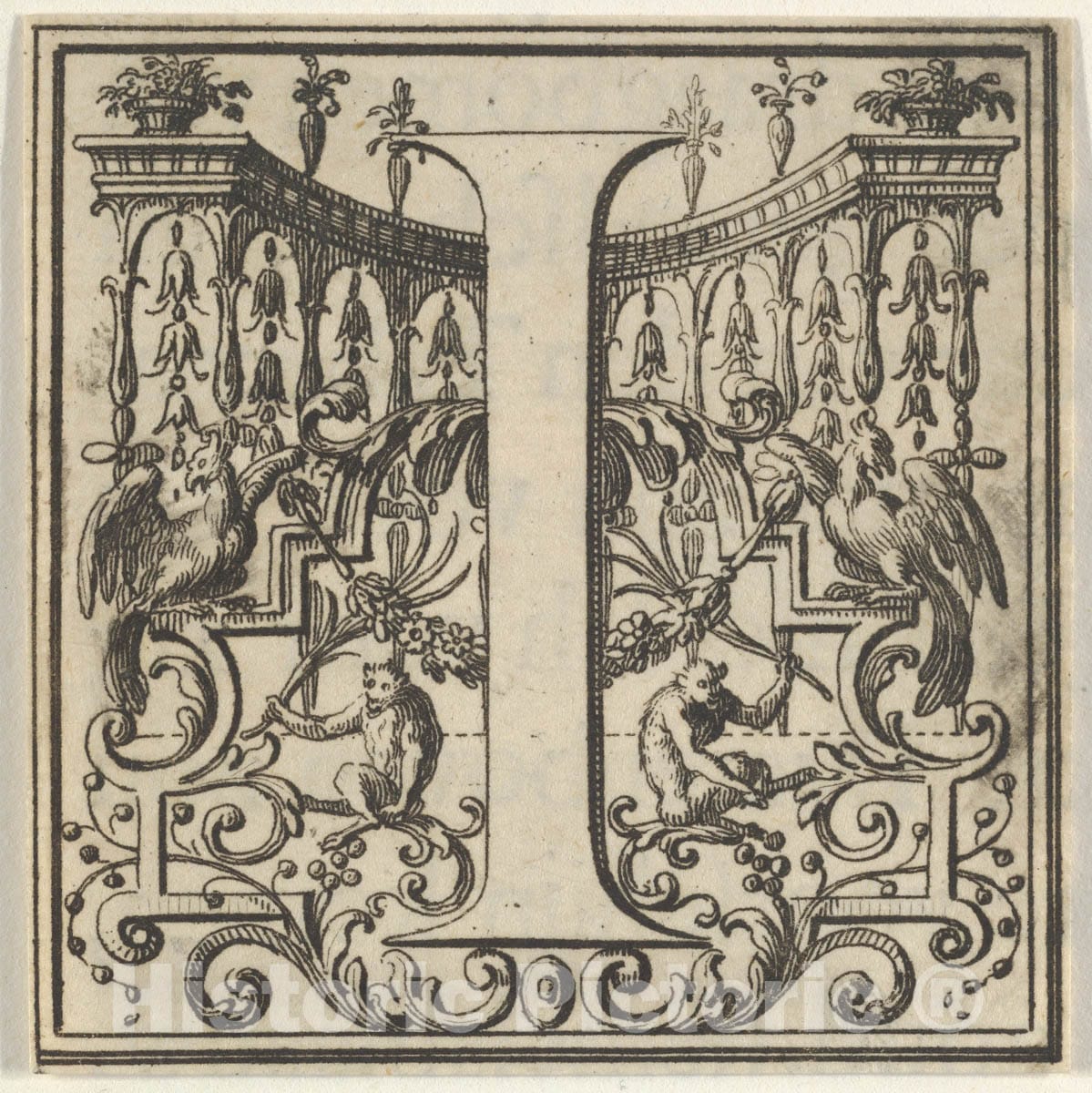 Roman Alphabet letter I with Louis XIV decoration - French, Paris 1673–1733 Amsterdam - Artist Nationality: - Original Medium, Materials or Technique: Engraving