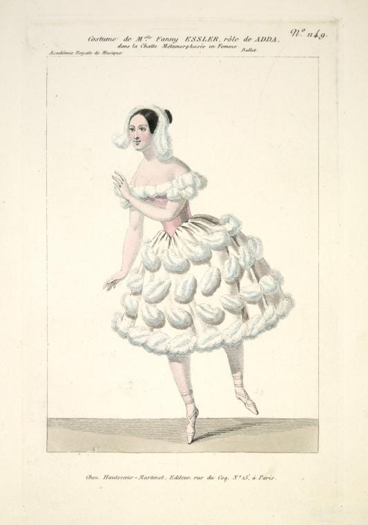 • .Art Print : Costume de Melle Fanny Essler [sic], role de Adda, Dans La chatte metamorphosee en Femme. Ballet. Academie Royale de Musique, 1837 - Vintage Wall Art