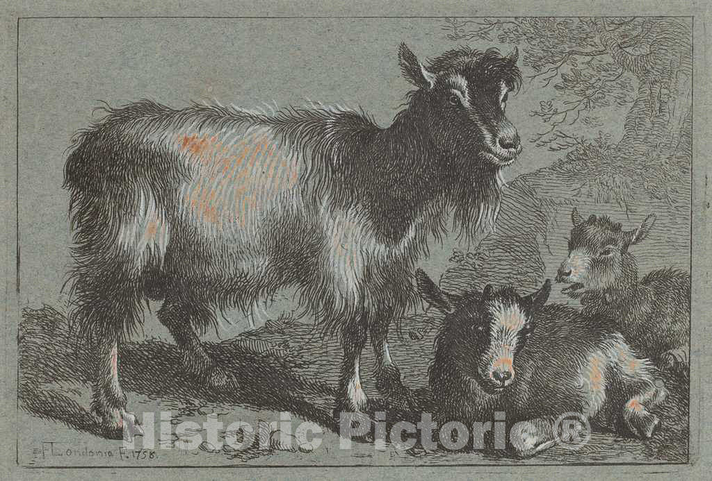 Art Print : Francesco Londonio, Goat and Two Kids, 1758 - Vintage Wall Art