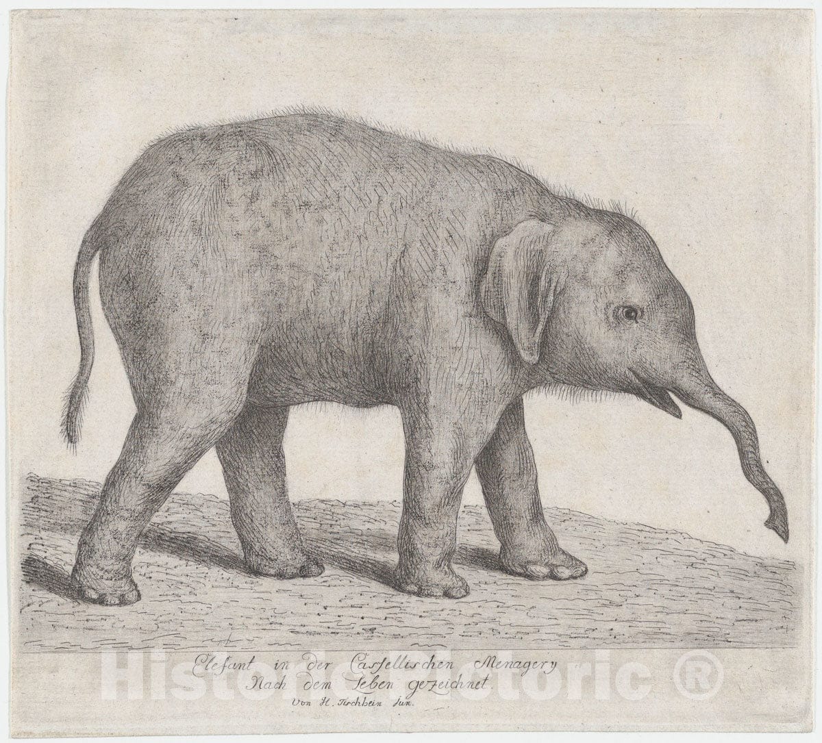A Young Elephant - German, Haina 1742-1808 Kassel - Artist Nationality: German - Original Medium, Materials or Technique: Etching and aquatint