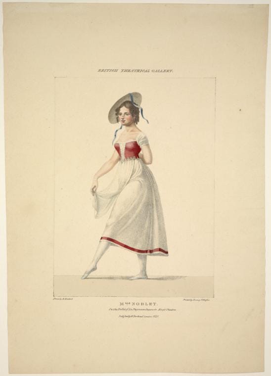Art Print : Mlle. Noblet. in The Ballet of La paysanne supposee. King's Theatre. Drawn by M. Waldeck. Printed by Rowney & Forster, 1821 - Vintage Wall Art
