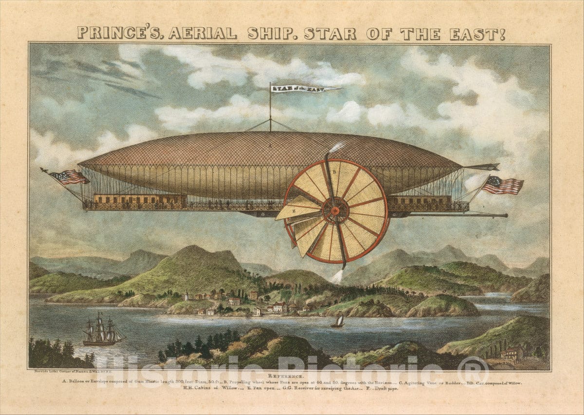 Prince's Aerial Ship. Star of the East! - New York, NY - Artist Nationality: American - Original Medium, Materials or Technique: Hand-colored lithograph