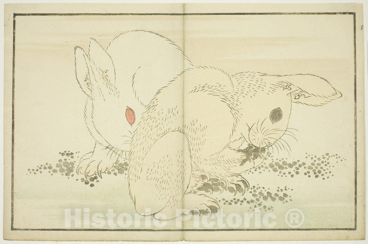 Art Print : Two Rabbits, from The Picture Book of Realistic Paintings of Hokusai (Hokusai shashin gafu), Katsushika Hokusai, c 1810, Vintage Wall Decor :
