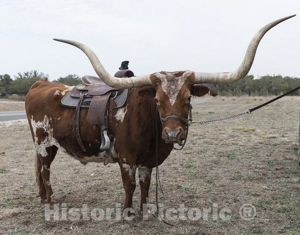 Bandera, TX Photo - Longhorn That accompanies Old-Timey Cook up The Road from The Cowboy Mardi Gras in Little Bandera, Texas, west of San Antonio