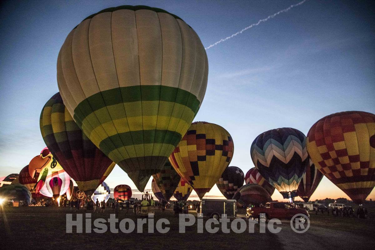 Colorful balloons delight the assembled crowd with a night glow as pilots fire the burners on the ground at the National Balloon Classic, a hot-air-balloon exhibition in Indianola, Iowa, a town near the state capital of Des Moines | Credit line: Photographs in the Carol M. Highsmith Archive, Library of Congress, Prints and Photographs Division.|Purchase; Carol M. Highsmith Photography, Inc.; 2016; (DLC/PP-2016:103-1).|Forms part of the Carol M. Highsmith Archive.