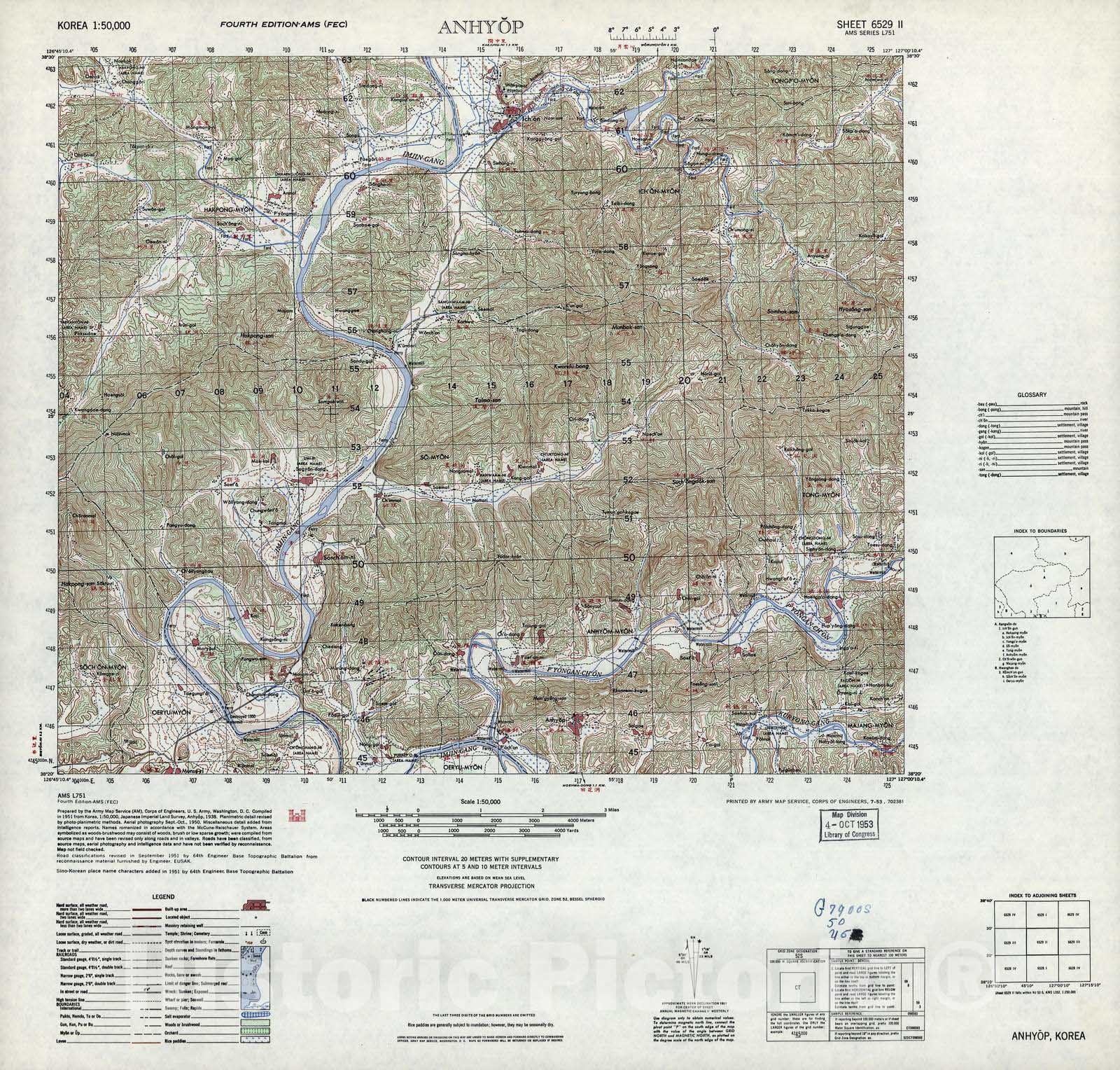 • .Historic 1945 Map - Korea 1:50,000 - Anhyop, 1953 - Series L751