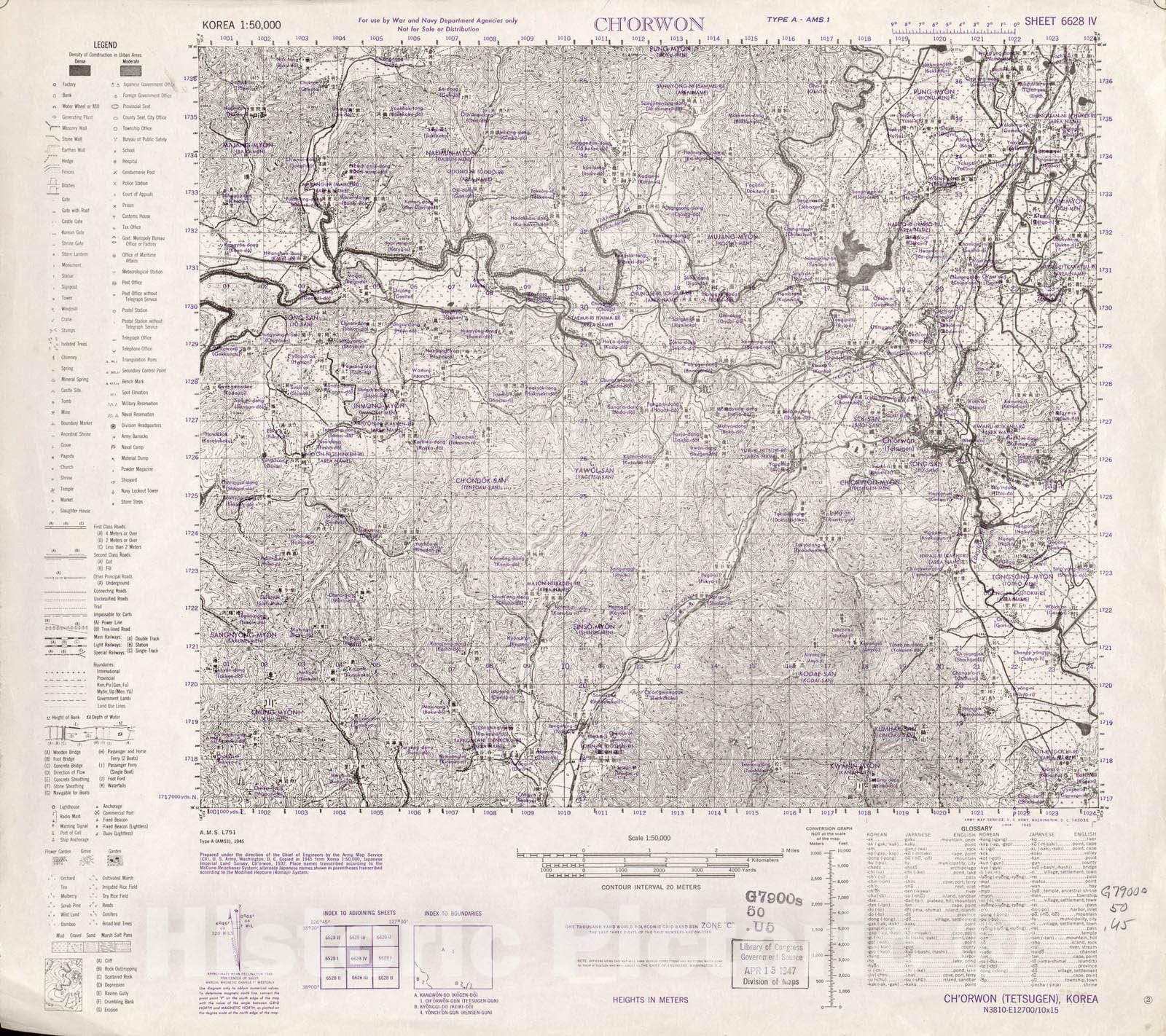 Historic 1945 Map - Korea 1:50,000 - Ch'orwon, 1945 - Series L751