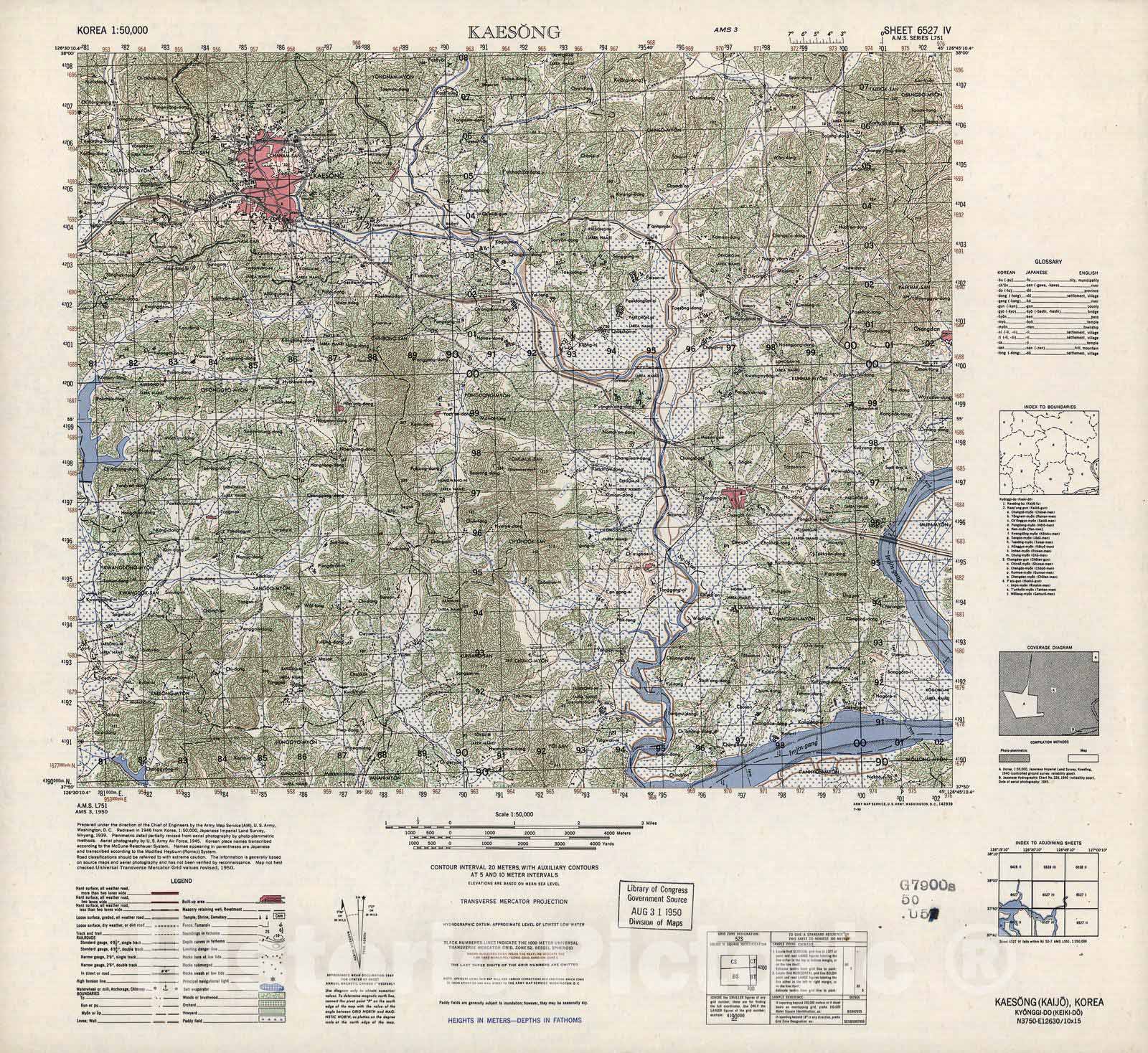 Historic 1945 Map - Korea 1:50,000 - Kaesong, 1950 - Series L751