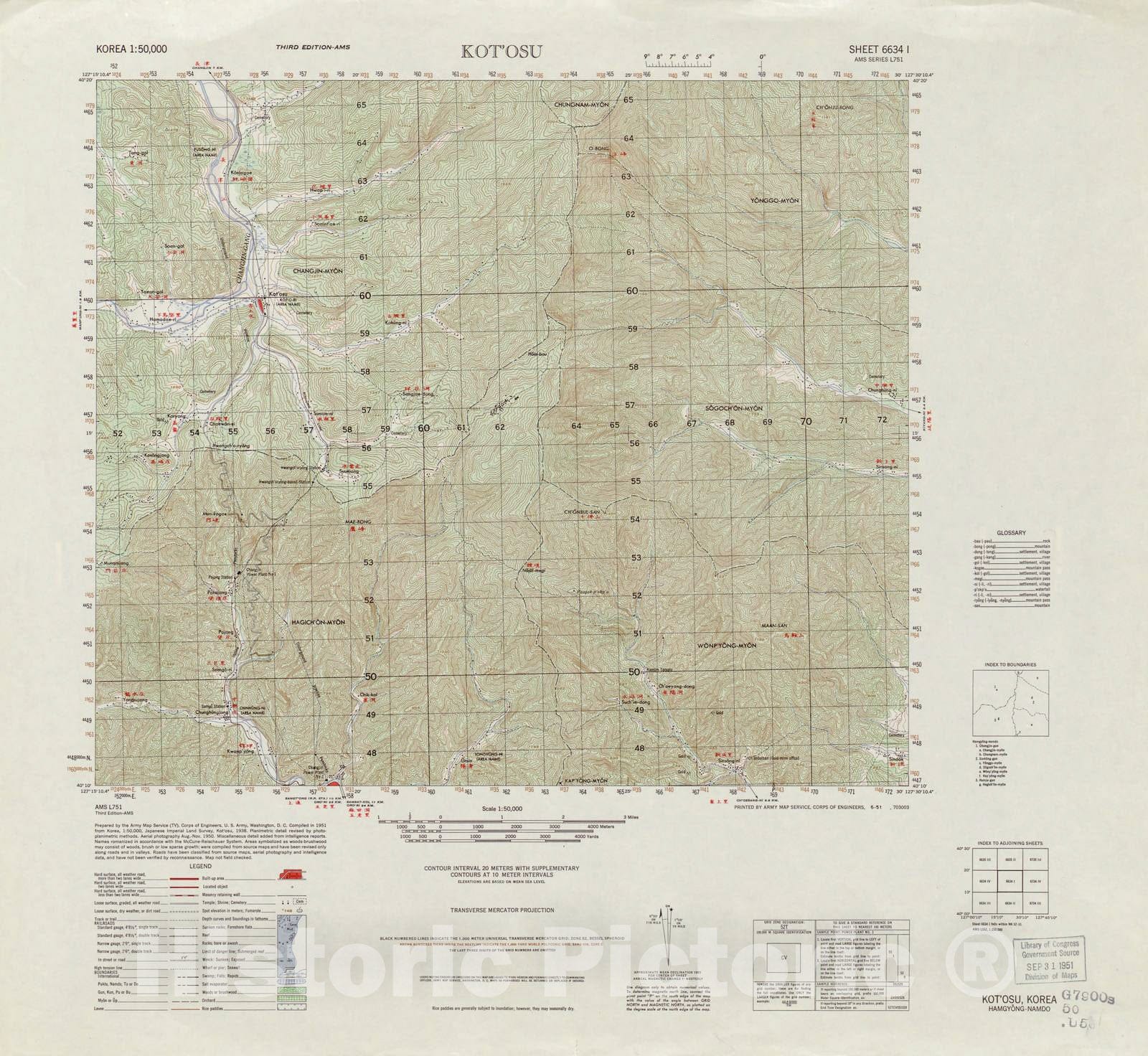 Historic 1945 Map - Korea 1:50,000 - Kot'osu, 1951 - Series L751