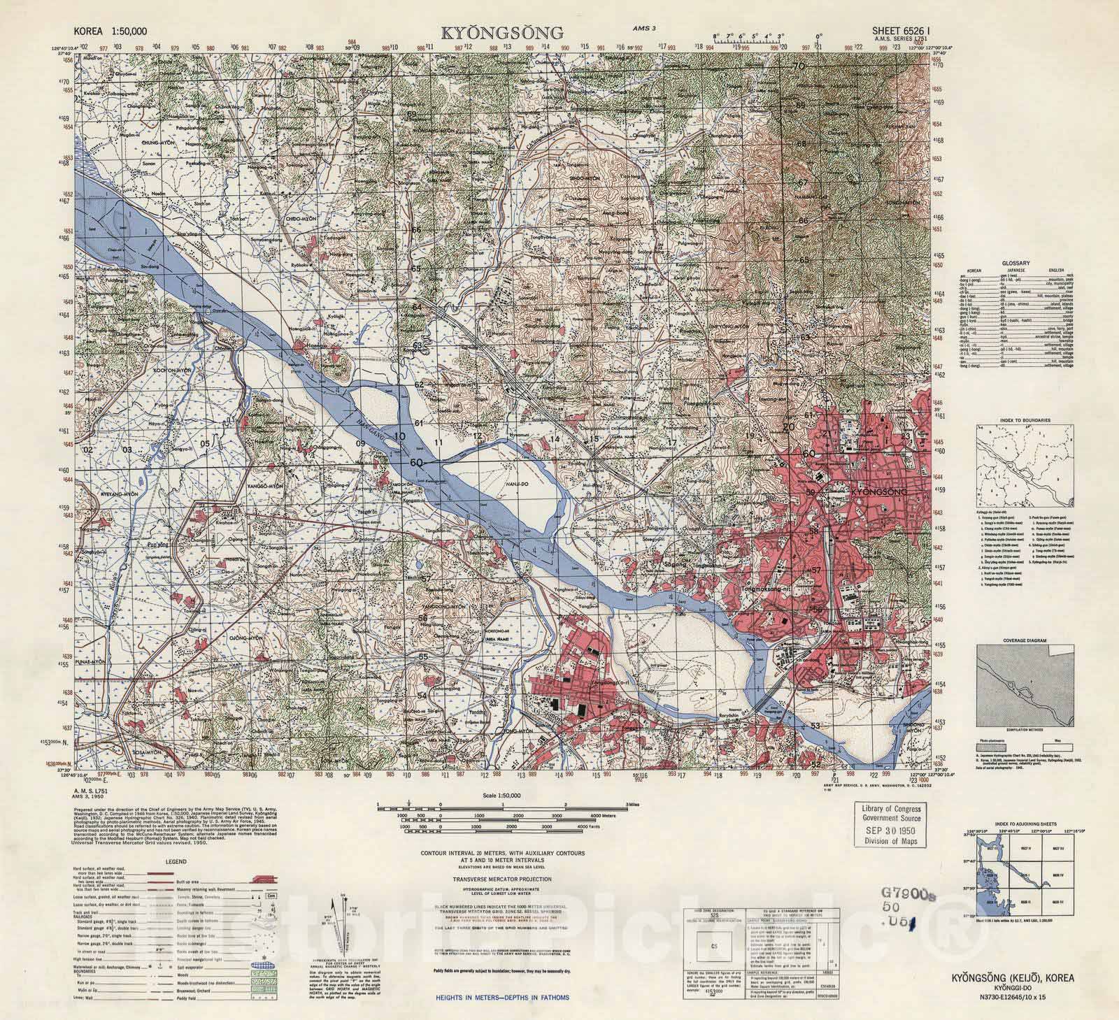 Historic 1945 Map - Korea 1:50,000 - Kyongsong, 1950 - Series L751