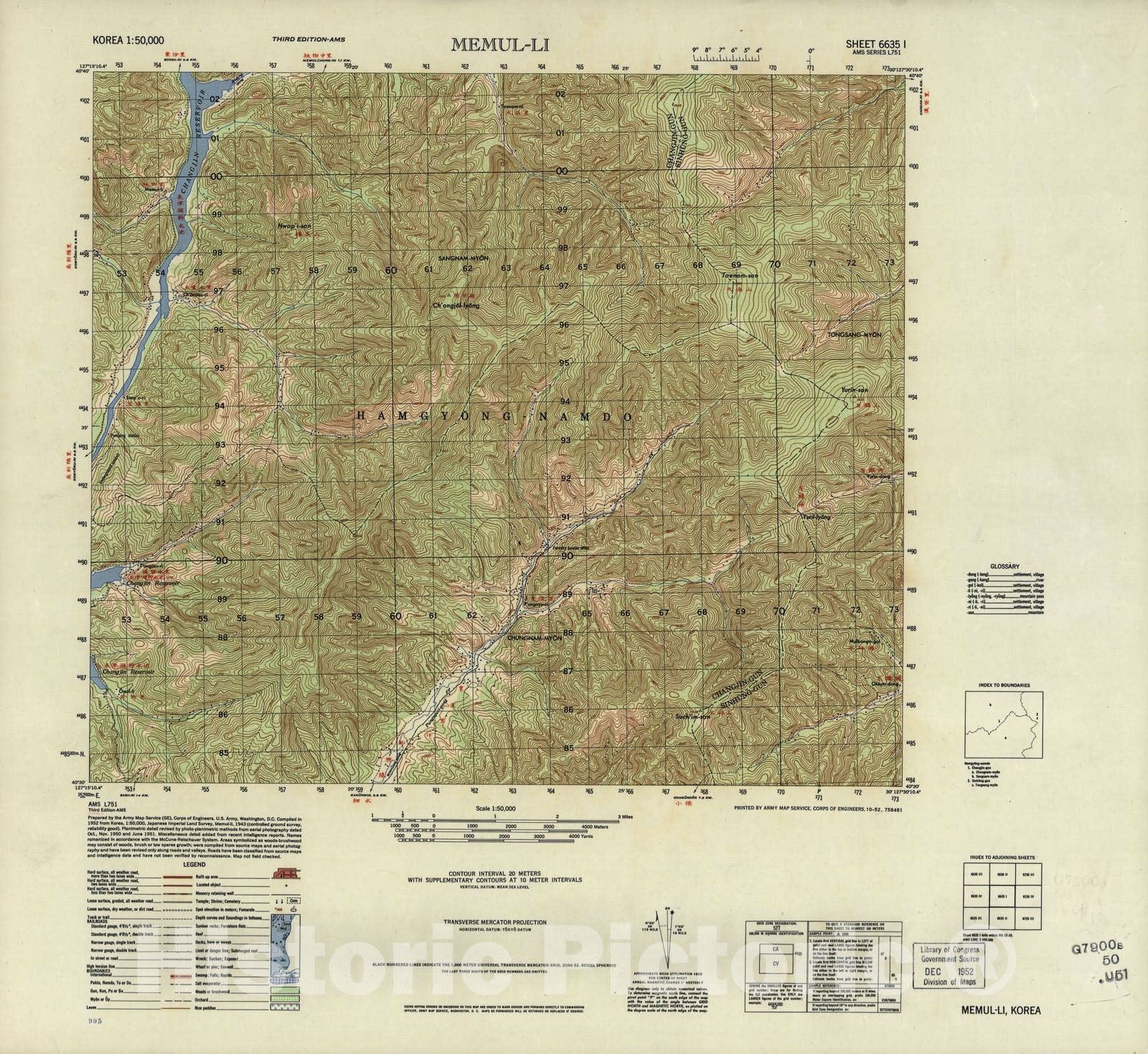 Historic 1945 Map - Korea 1:50,000 - Memul-Li, 1952 - Series L751