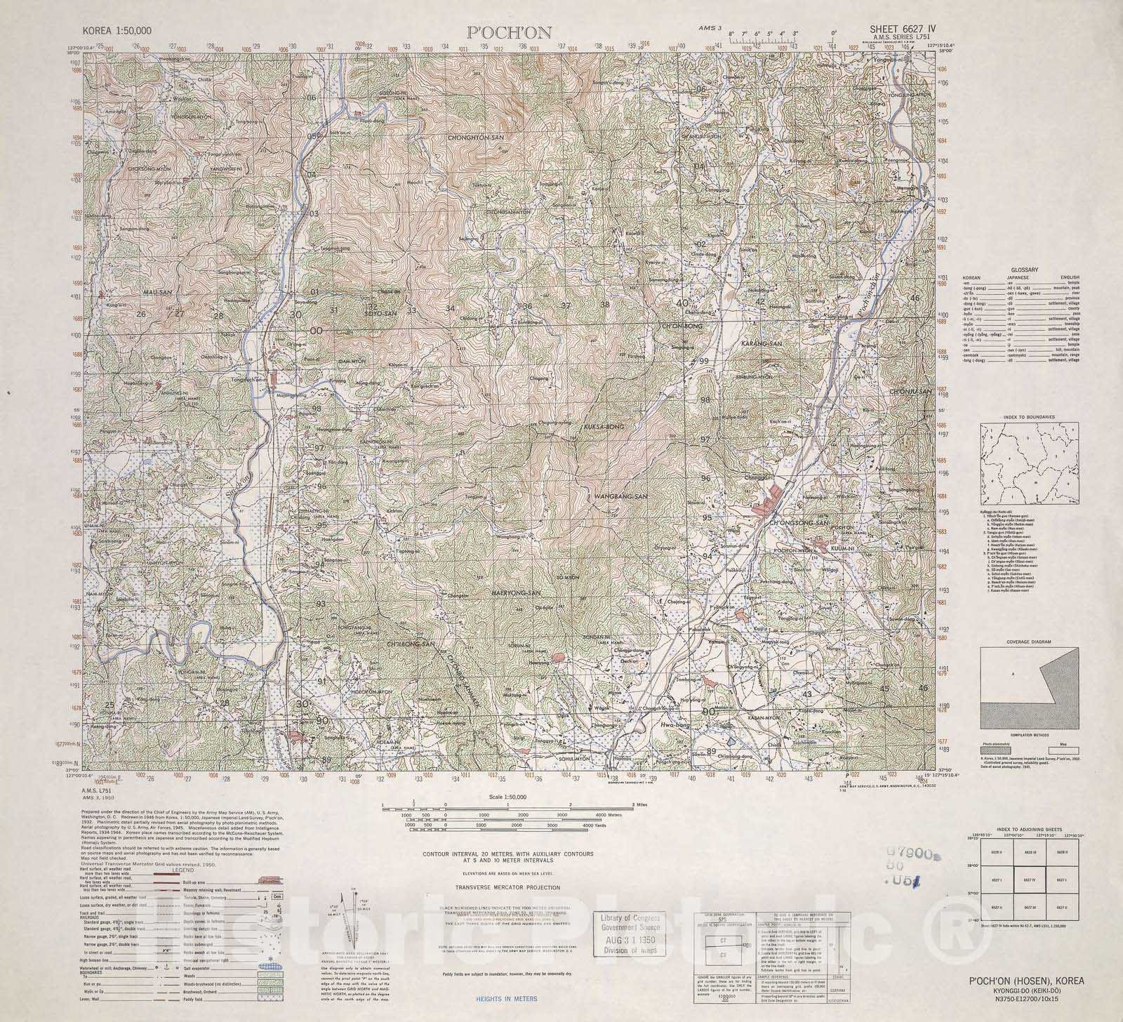 Historic 1945 Map - Korea 1:50,000 - Poch'on, 1950 - Series L751