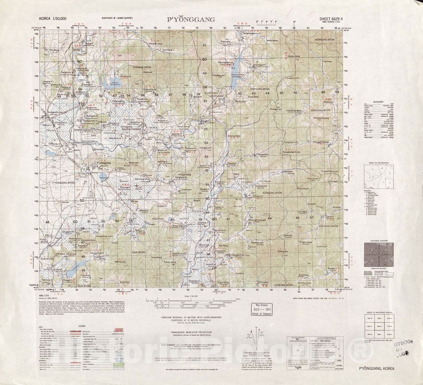 Historic 1945 Map - Korea 1:50,000 - P'Yonggang, 1953 - Series L751