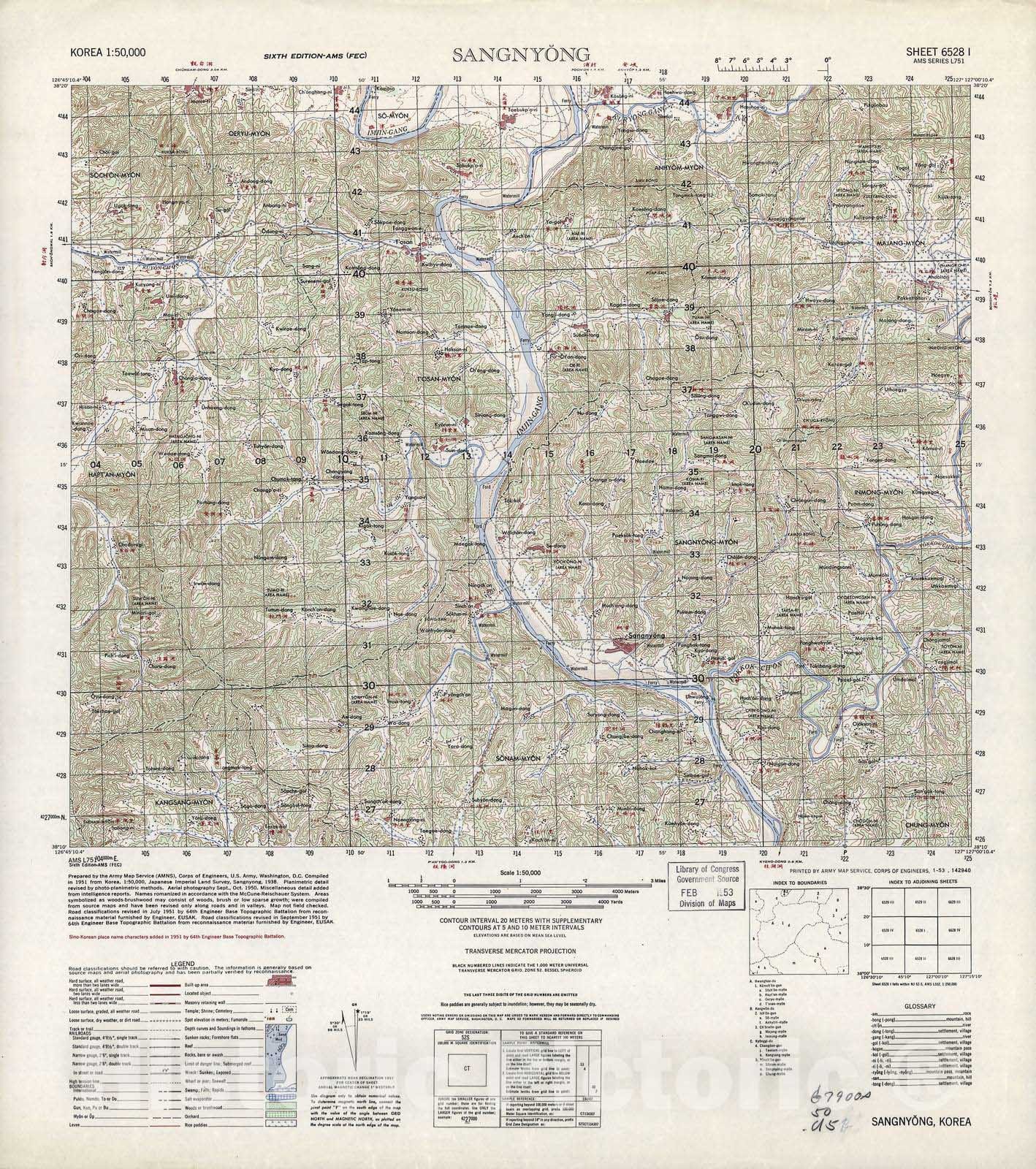 Historic 1945 Map - Korea 1:50,000 - Sangnyong, 1953 - Series L751