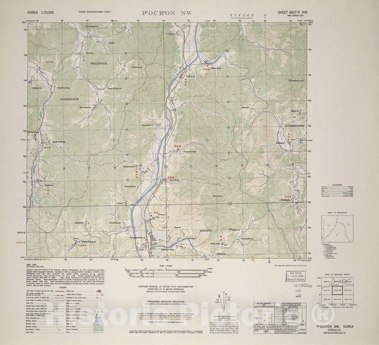 Historic 1952 Map - Korea 1:25,000 - P'och'on NW - Series L851