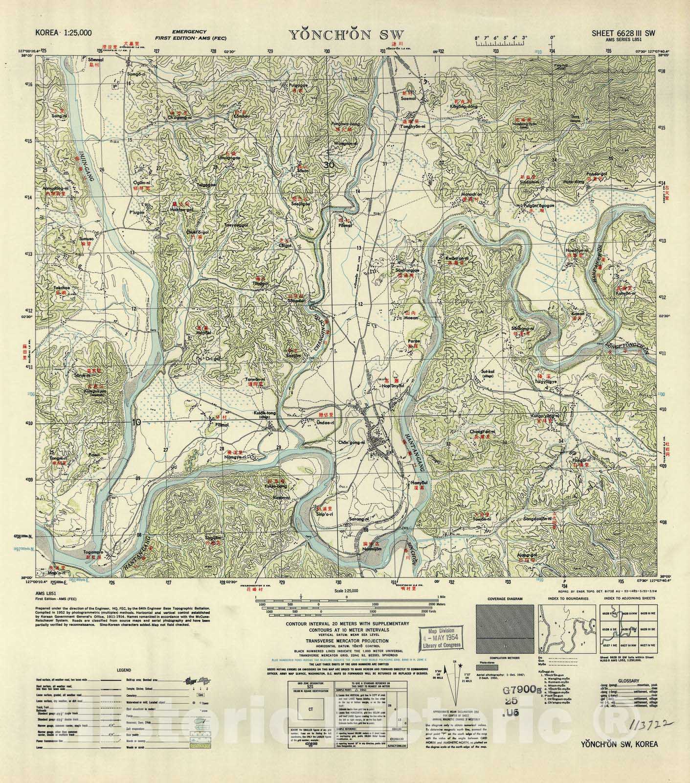 Historic 1952 Map - Korea 1:25,000 - Yonch'on SW - Series L851 2