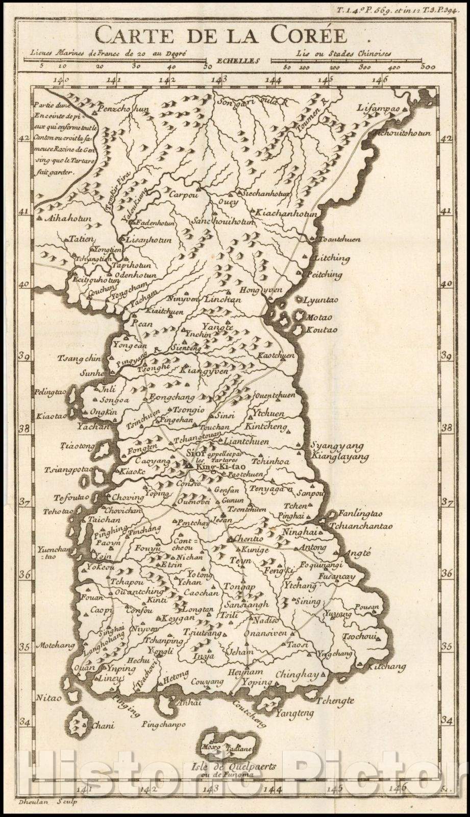 Historic Map - carte de la coree dheulan/Map of Korea, engraved by Guilluame Dheulland in Paris, 1750, Guillaume Dheulland - Vintage Wall Art