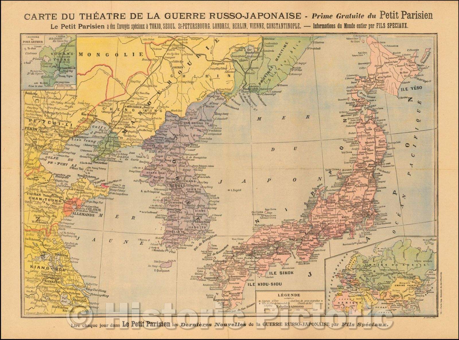 Historic Map - Carte Du Theatre De La Guerre Russo-Japonaise-Prime Gratuite du Petit Parisien/Broadside Map of the Theater of War in China and Korea, 1904 - Vintage Wall Art