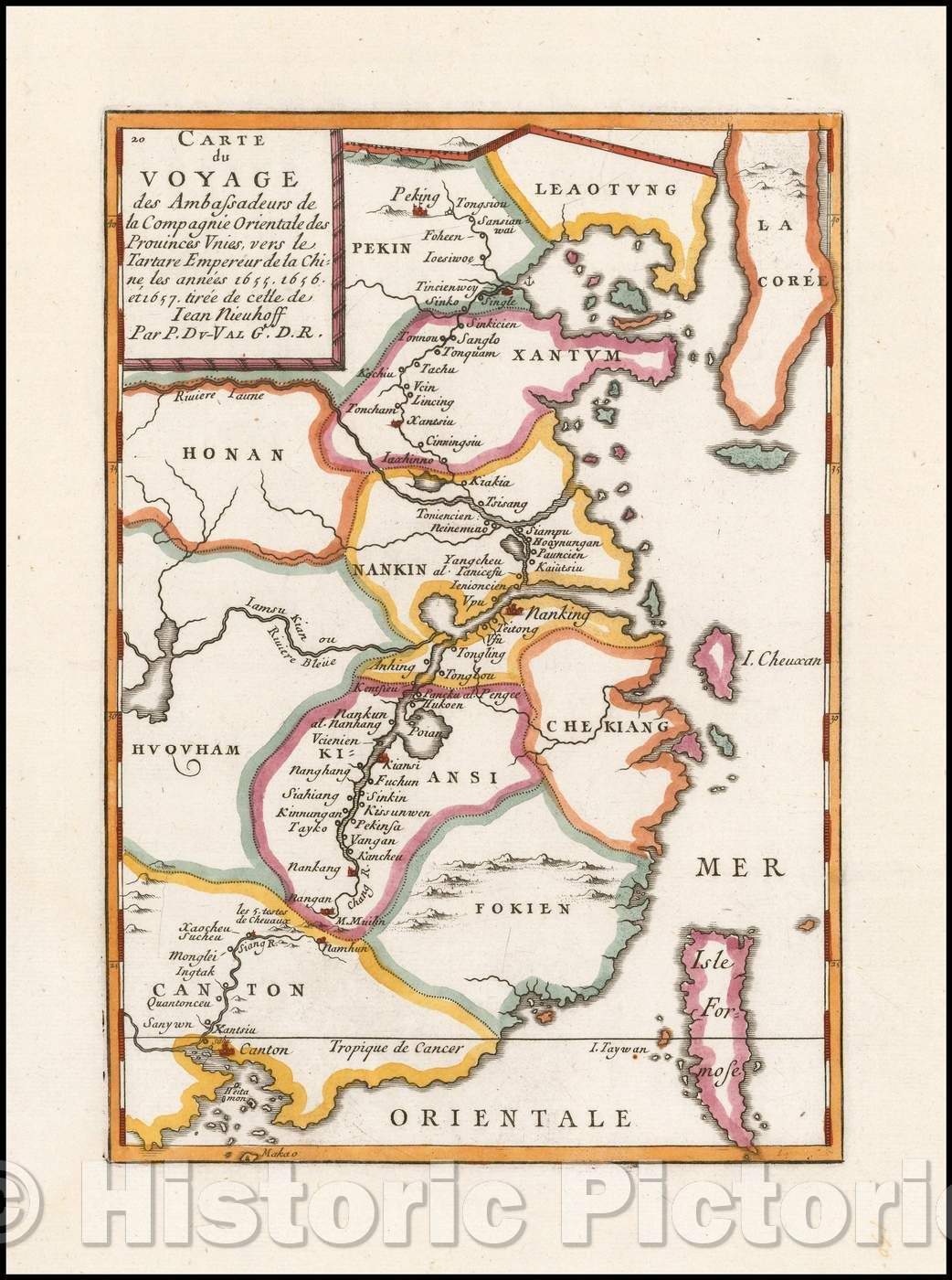 Historic Map - Carte du Voyage des Ambassadeurs de la Compagnie Orientale des Provinces :: China, Beijing, Korea, Great Wall of China, Canton, Macao etc, 1665 - Vintage Wall Art