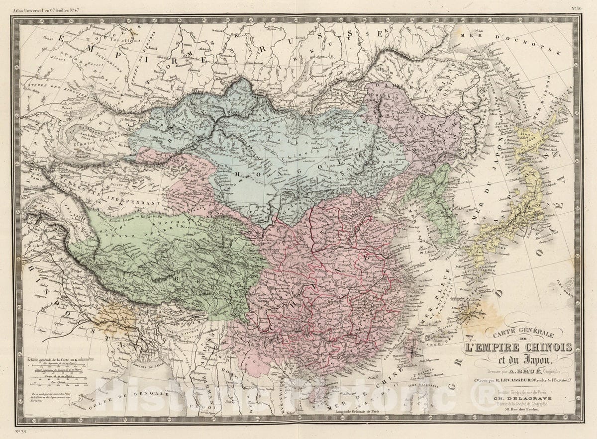 Historic Map : China; Japan; Mongolia; Korea, 1875 Empire Chinois et Japon. , Vintage Wall Art
