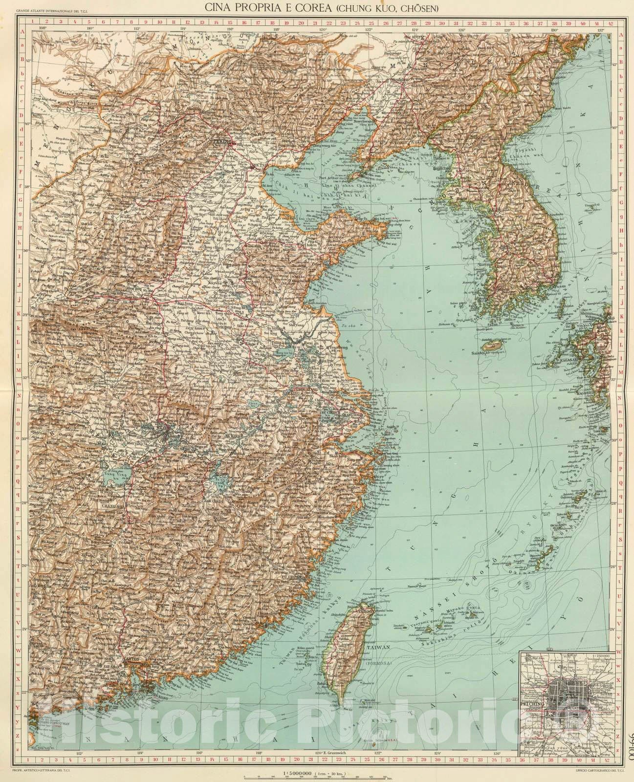 Historic Map : China; Korea, Beijing Region (China) 1929 99-100. Cina Propria, Corea. , Vintage Wall Art