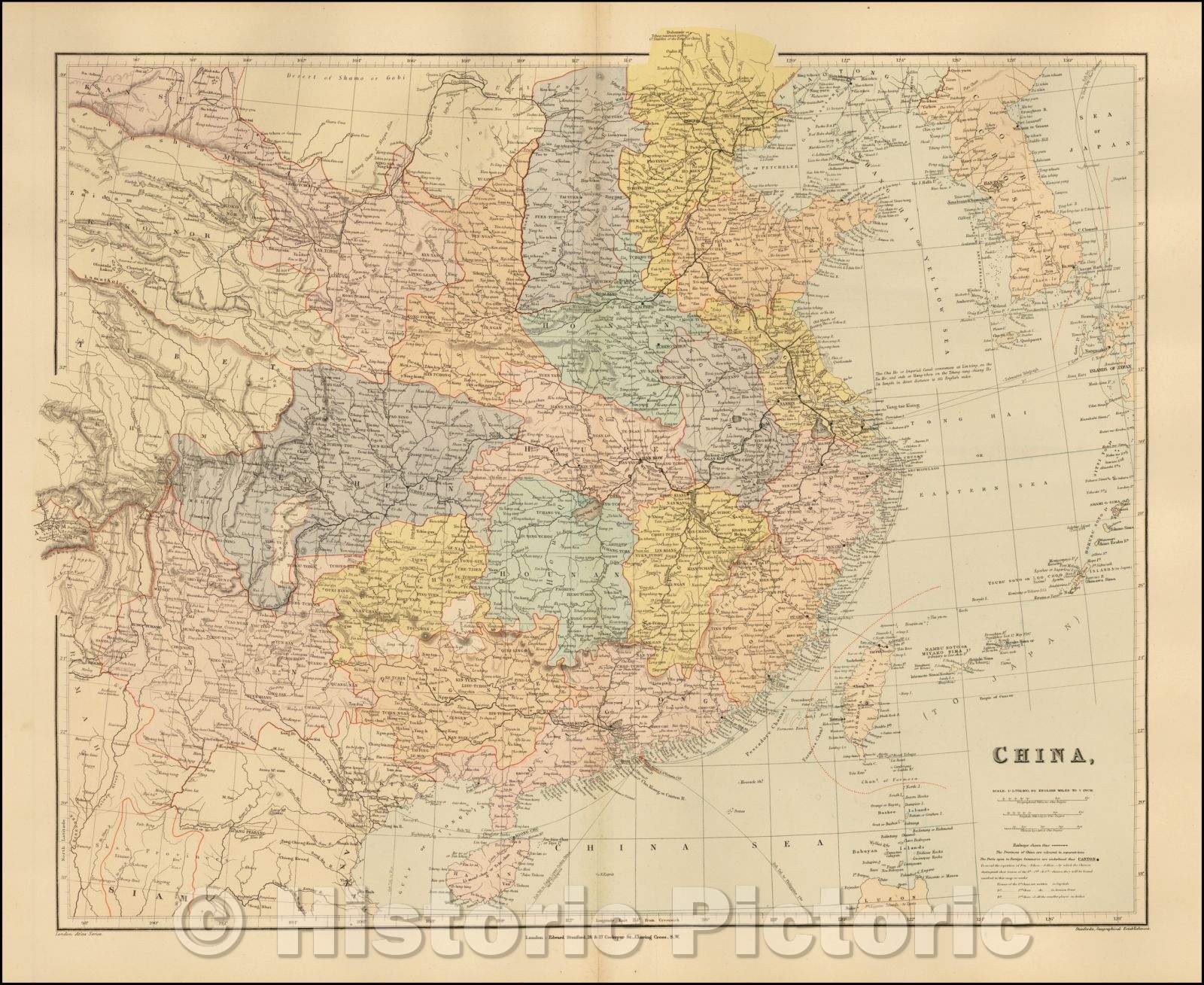 Historic Map - China (and Korea, with Whang Hai or Yellow Sea), 1896, Edward Stanford - Vintage Wall Art