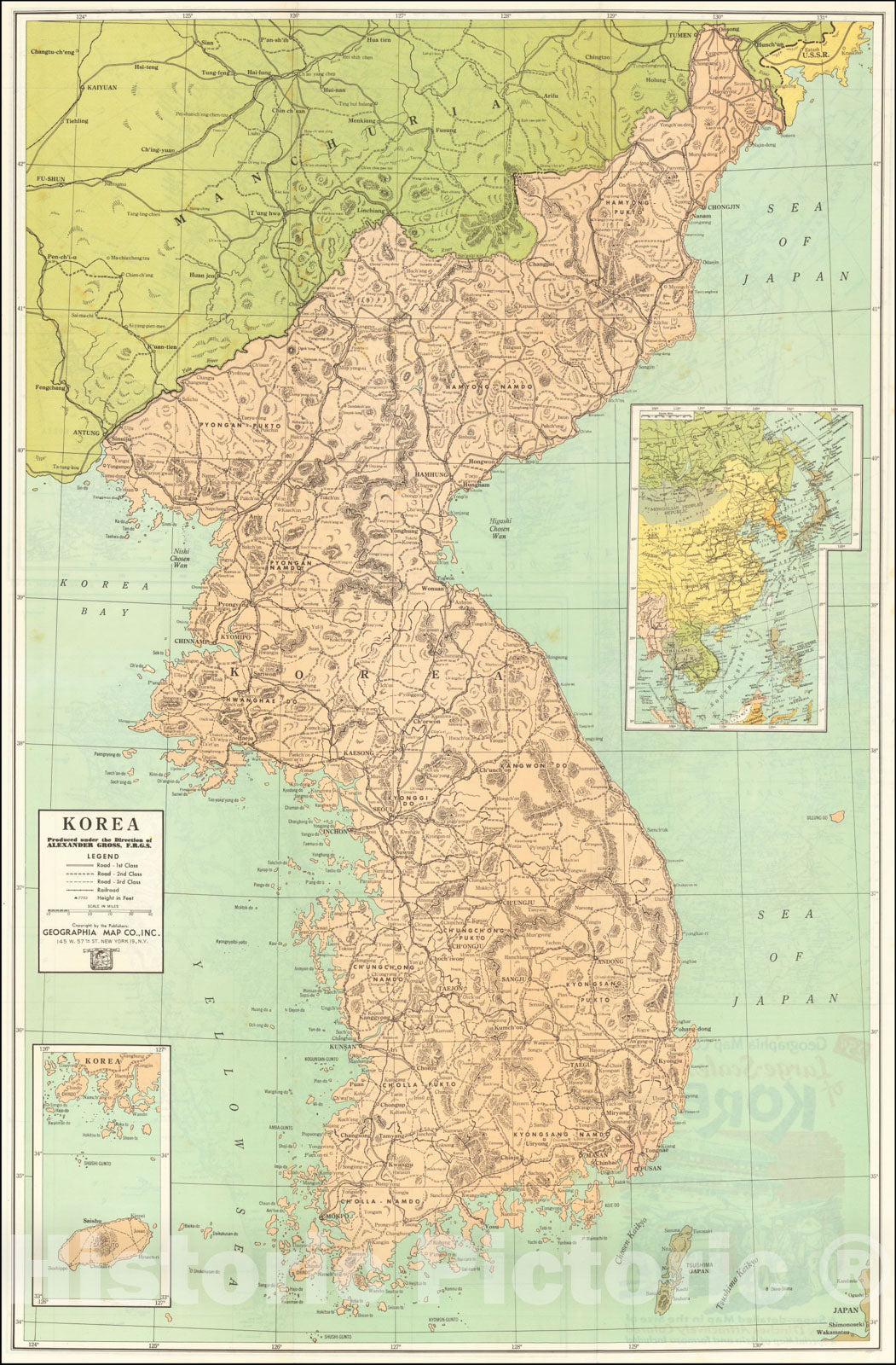 • Historic Map : Geographia Map Company's Large Scale Map of Korea, c1950, Geographia, Vintage Wall Art