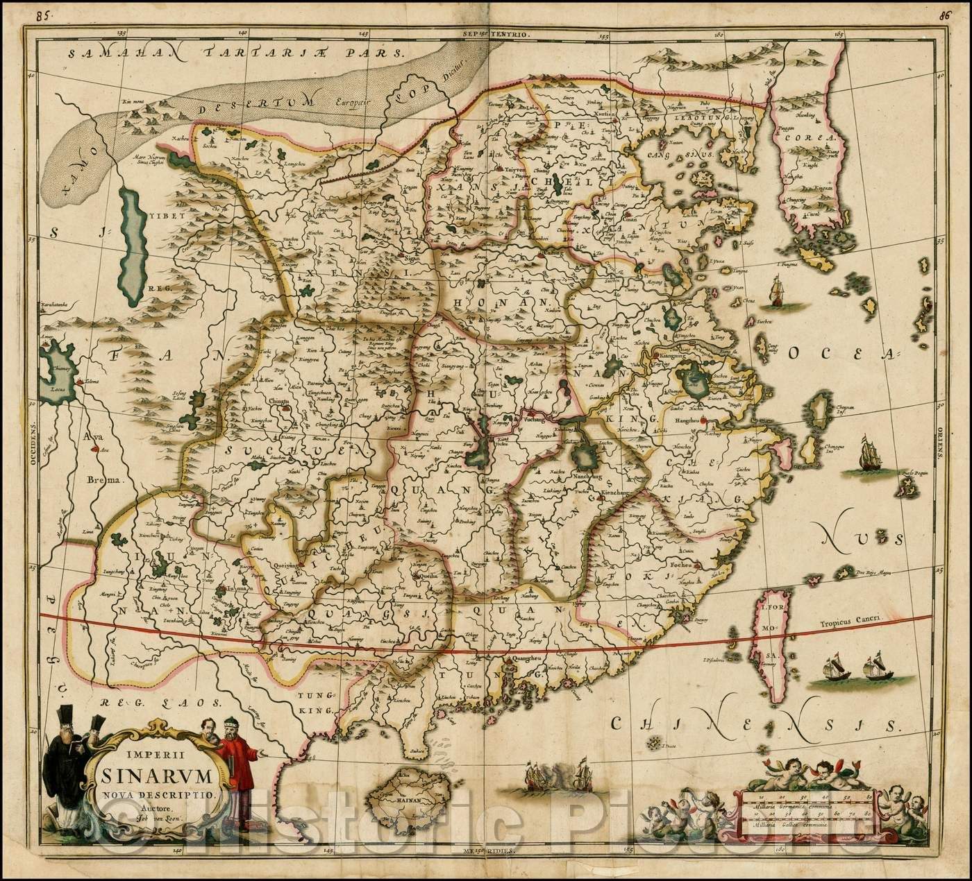 Historic Map - Imperii Sinarum Nova Descriptio. Auctore Joh van Loon/Map of China and Korea, composite atlas, 1660, Jan Jansson - Vintage Wall Art