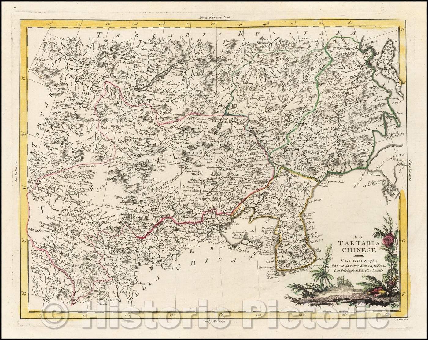 La Tartaria Chinese / Map, showing the Region from Korea and Tartary to Northern China, 1784, Antonio Zatta