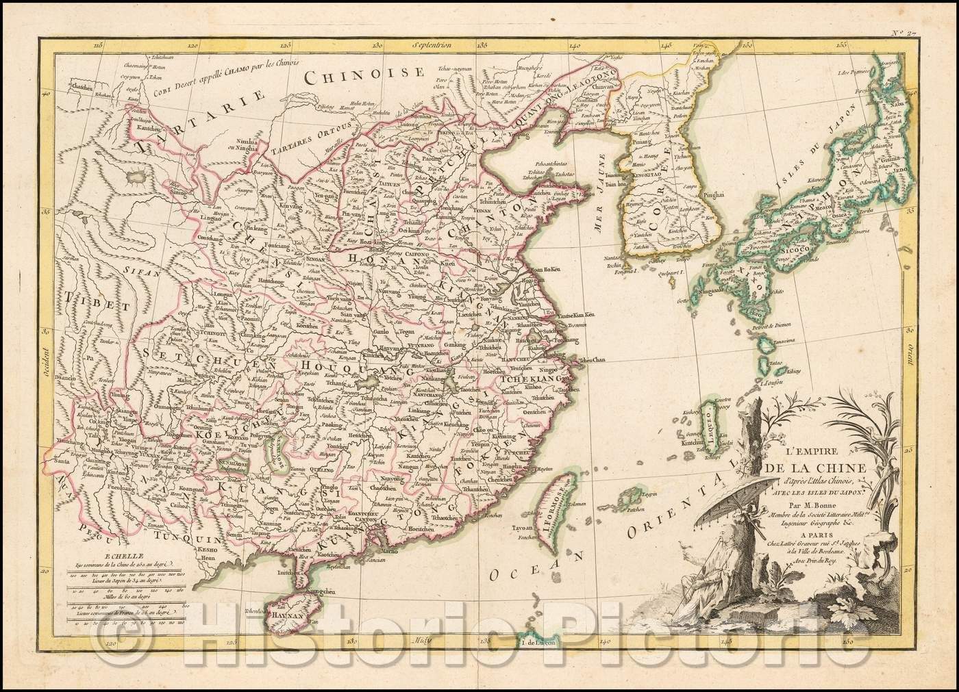 Historic Map - L'Empire de la Chine avec les Isles Du Japon et la Coree/Map of China, Korea and Japan, 1762, Jean Lattre - Vintage Wall Art