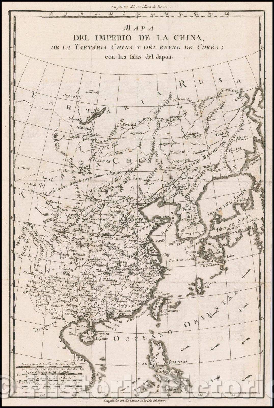 Historic Map - Mapa Del Imperio de la China, de la Tartaria China y del reyno de Corea; con las Islas del Japon/Spanish Map of China, Tartary and Korea, 1790 - Vintage Wall Art