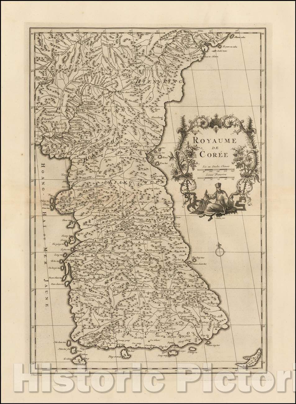 Historic Map - Royaume De Coree/The First Map of Korea Published in Europe, 1737, Jean-Baptiste Bourguignon d'Anville - Vintage Wall Art