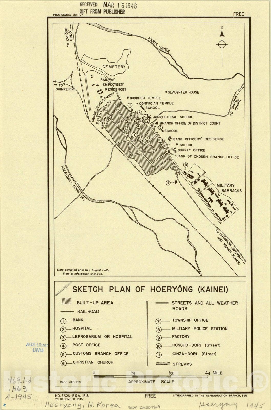 Map : Hoeryong, North Korea 1945, Sketch plan of Hoeryong (Kainei), Antique Vintage Reproduction